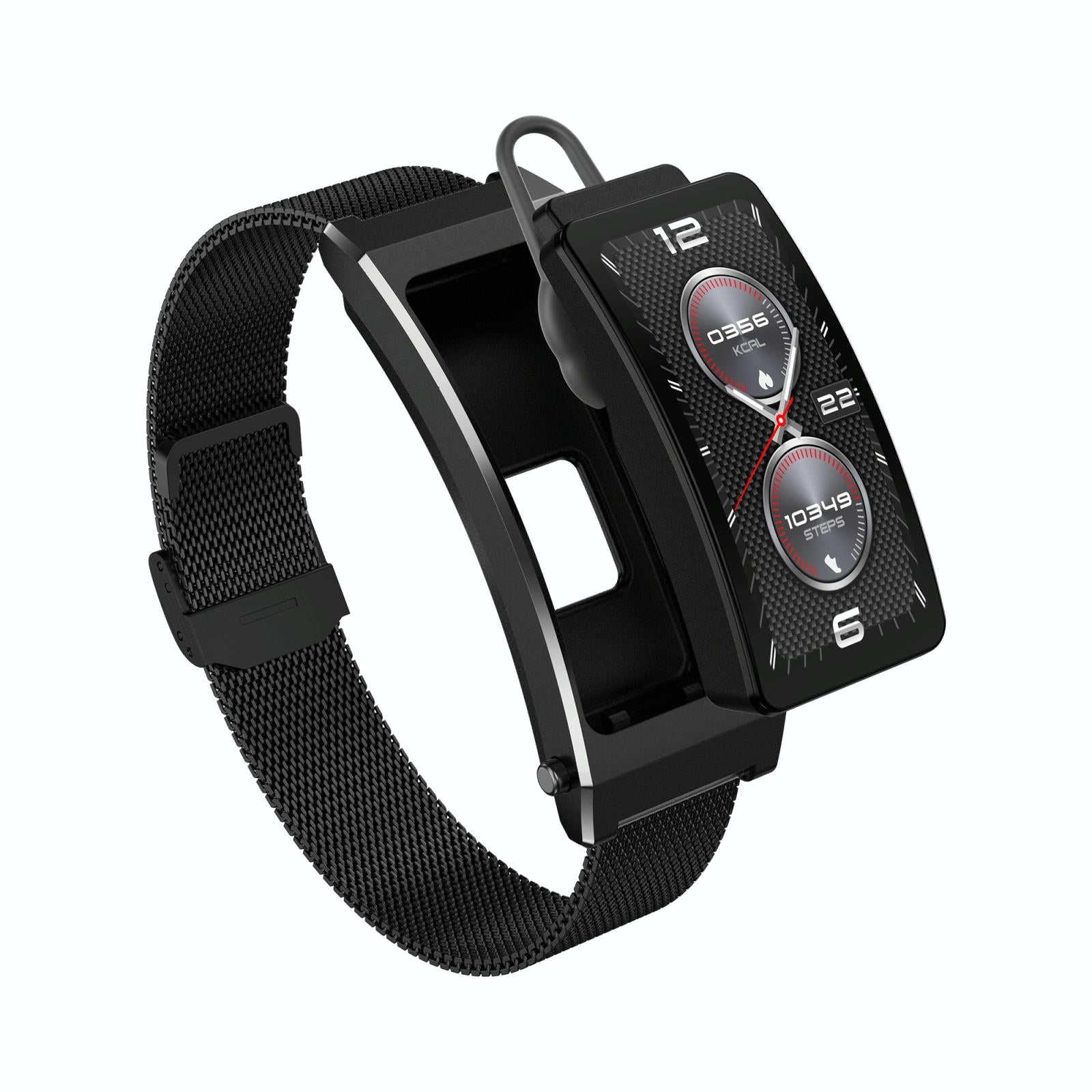 Smart Health Monitoring Bracelet With Bt Call And Leather Strap – Black Steel Strap