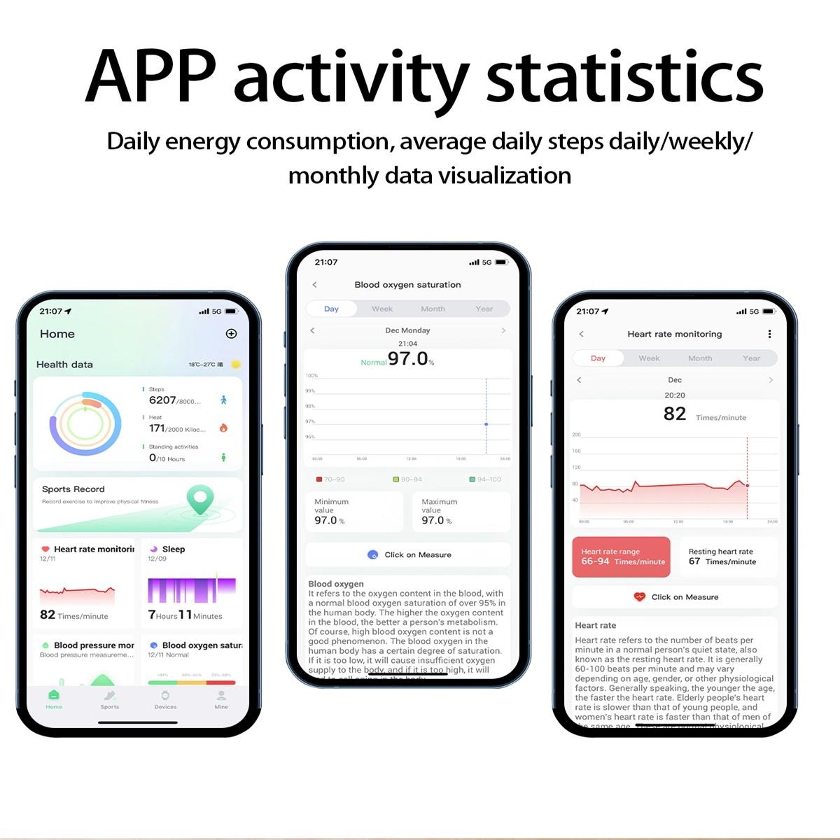 • Monitors heart rate, blood pressure, blood oxygen levels, and sleep patterns