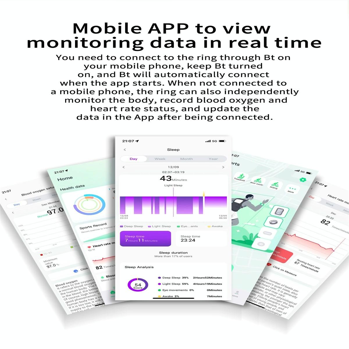 This smart ring offers comprehensive health monitoring features, including heart rate, blood oxygen levels, and sleep tracking. Designed for convenience and durability, it combines advanced sensors with a sleek appearance to support your daily wellness needs.