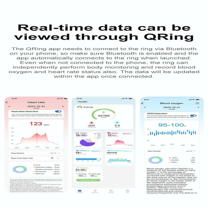 This smart ring offers comprehensive health and activity monitoring features, including heart rate, blood oxygen levels, sleep tracking, and multiple sports modes. Designed for convenience and compatibility, it supports various smartphones and provides reliable data to help you stay informed about your health and fitness.