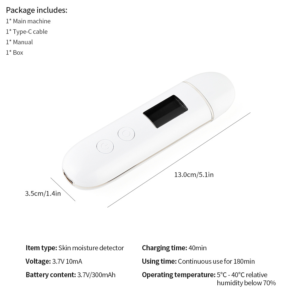 - Detection Parameters: Water, oil, elasticity, skin age, fluorescent agents, temperature, humidity