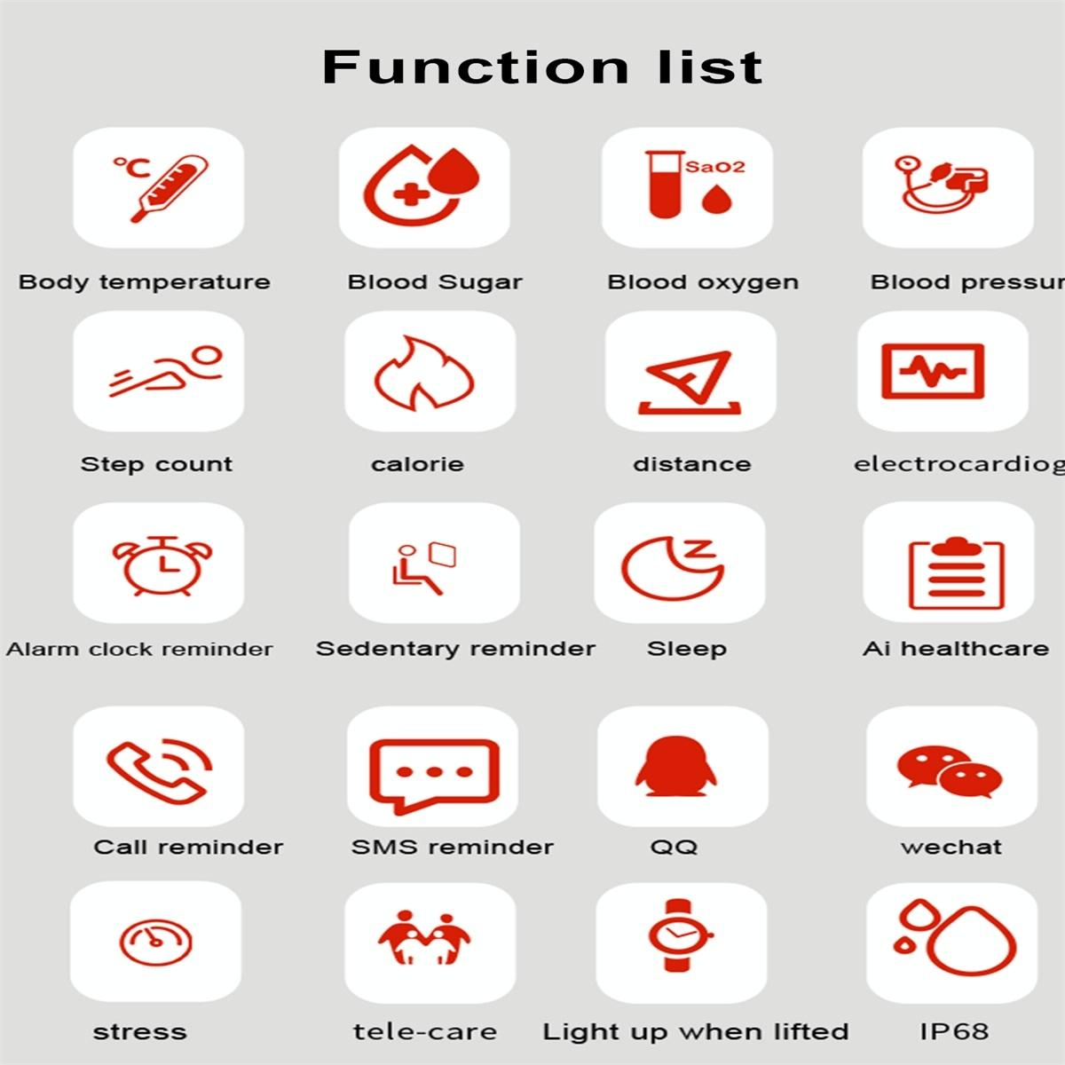 Smart Watch With Heart / Bp / Oxygen / Sugar Monitoring Silicone Strap Colour Screen - Red