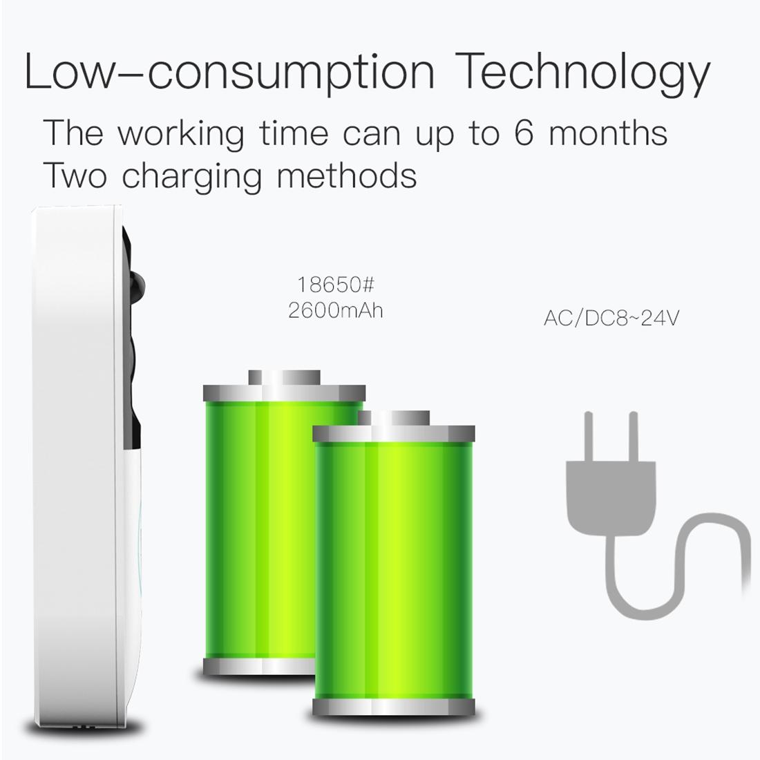 This smart wifi video doorbell features night vision and remote monitoring capabilities, providing enhanced security and convenience for your home. Its sleek white design complements various home decors and allows you to monitor your doorstep remotely through your mobile device.