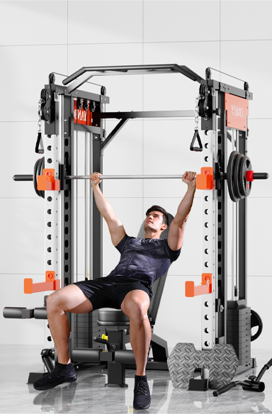 This multi-functional training machine is designed for home gyms and light commercial use, offering a comprehensive workout experience. It combines various stations including a cable crossover, chin-up, smith machine, and squat rack, allowing for a wide range of upper and lower body exercises. Built with a heavy-duty steel frame and smooth linear bearing system, it provides stability, durability, and flexibility for full-body training.