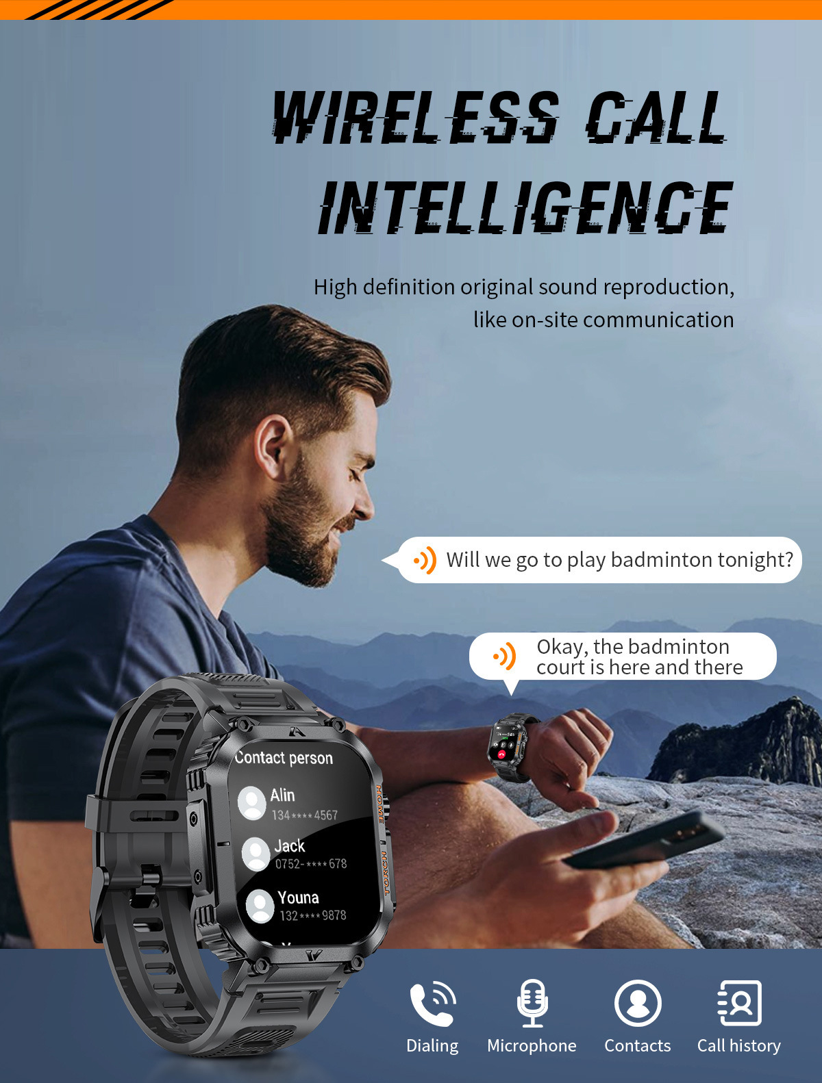 This rugged smartwatch combines multiple practical features including health monitoring, outdoor navigation, and convenient communication. It is designed for active users who need a durable device that supports fitness tracking, outdoor adventures, and daily connectivity.