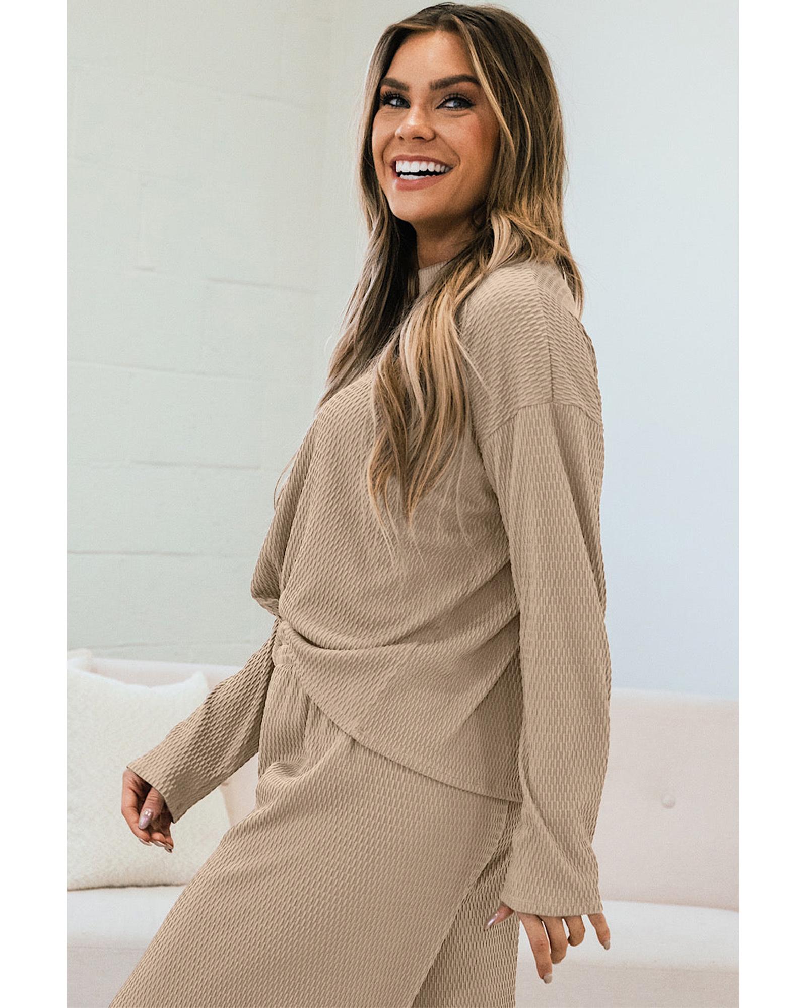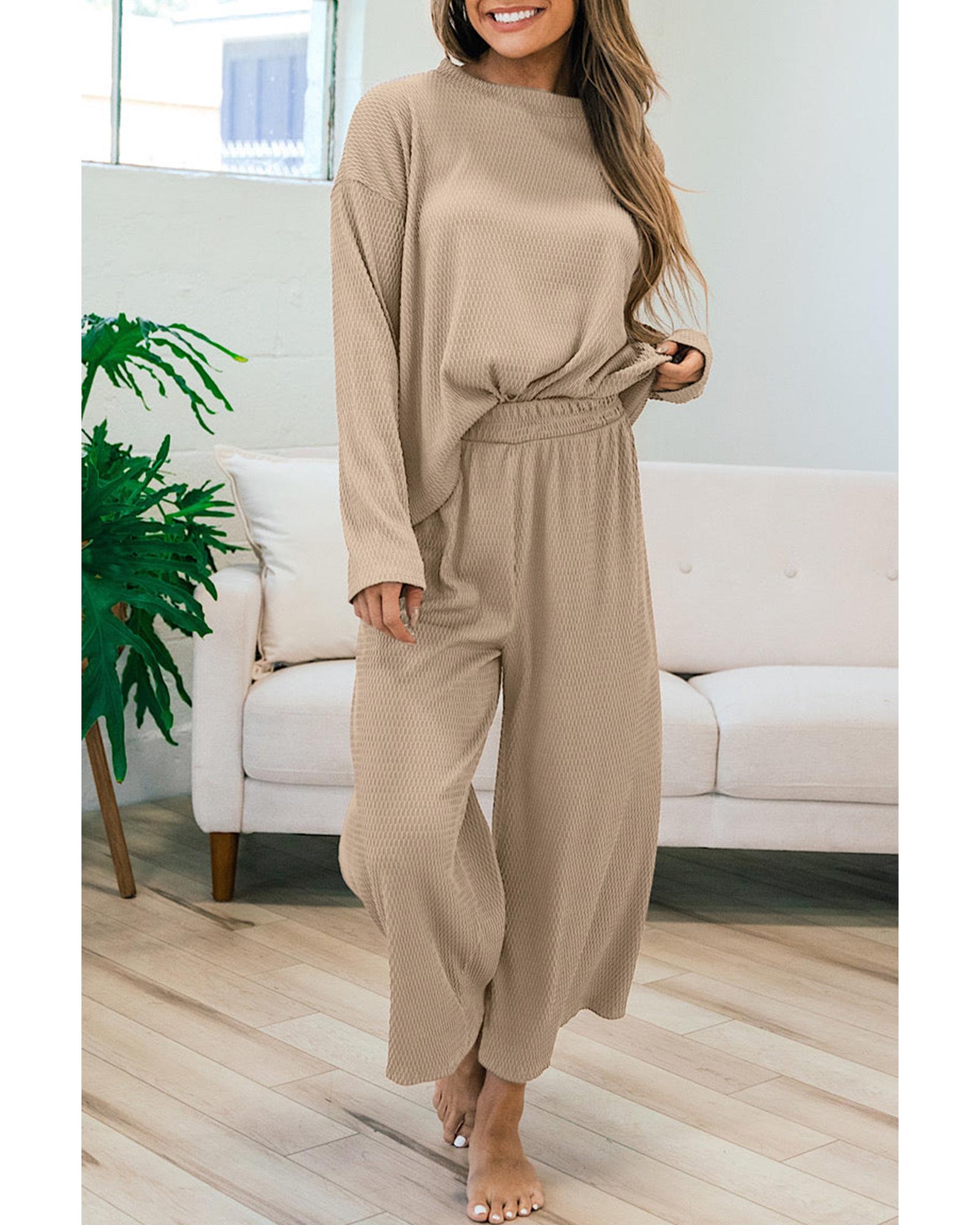 Smoke Gray Loose Textured Pullover and Pants Outfit – S