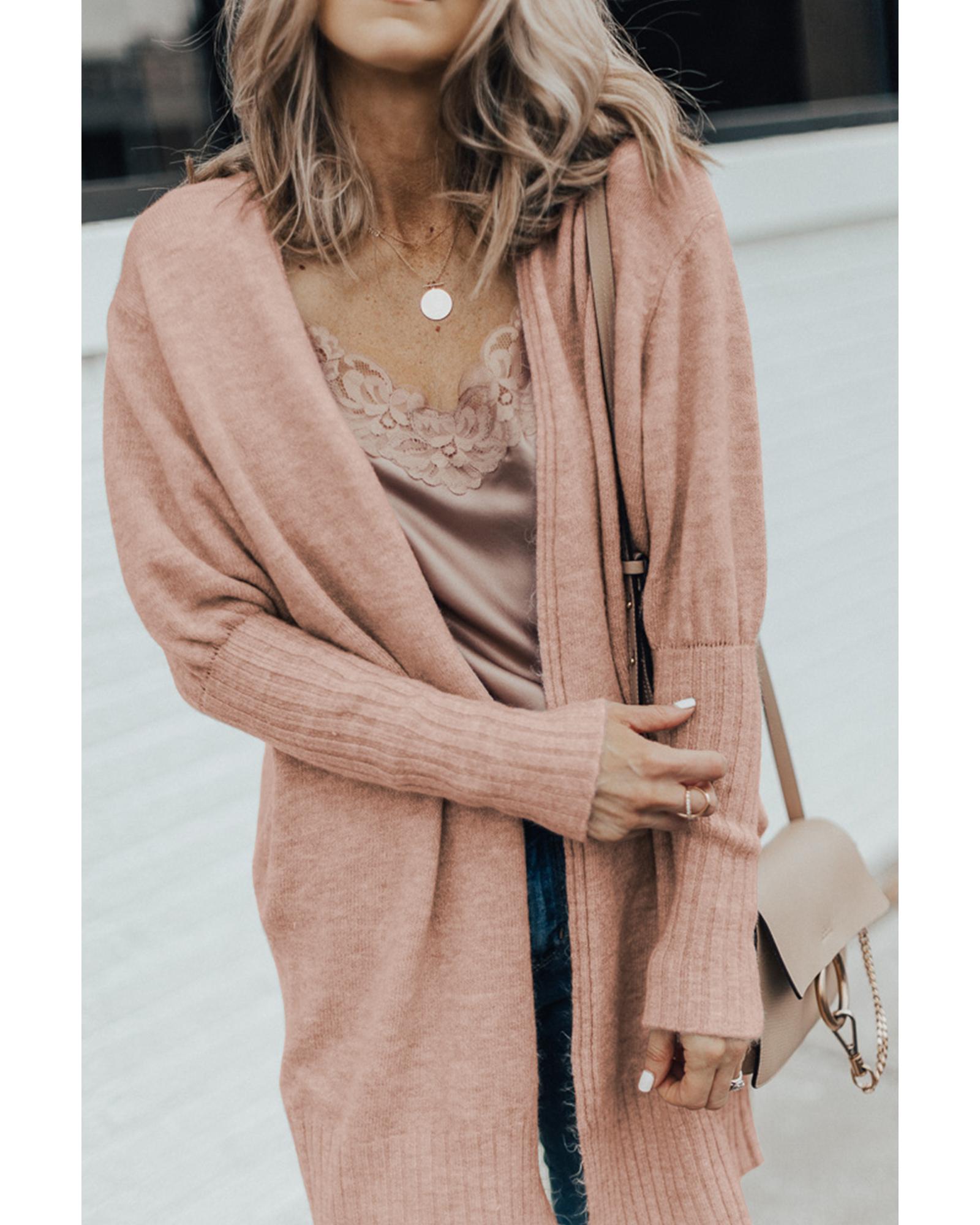 Smoke Gray Ribbed Trim Puff Sleeve Open Cardigan – M