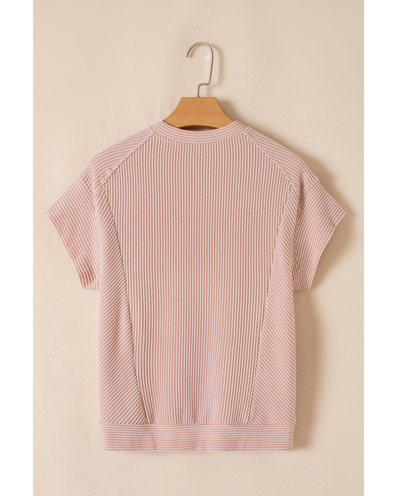 Smoke Gray Solid Corded Knit Short Sleeve T Shirt and Wide Leg Pants Set – M