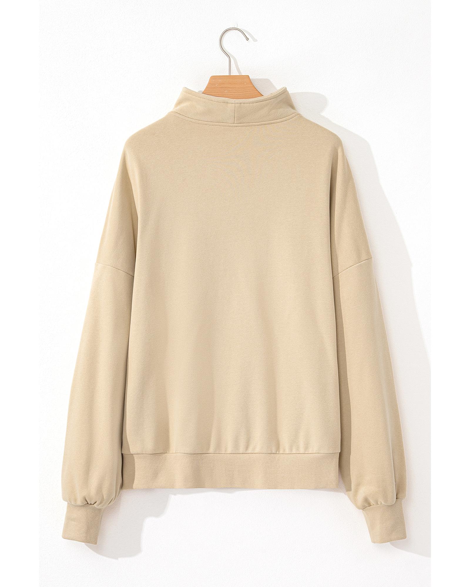 • Solid color casual sweatshirt with a zip-up front and stand neck design
