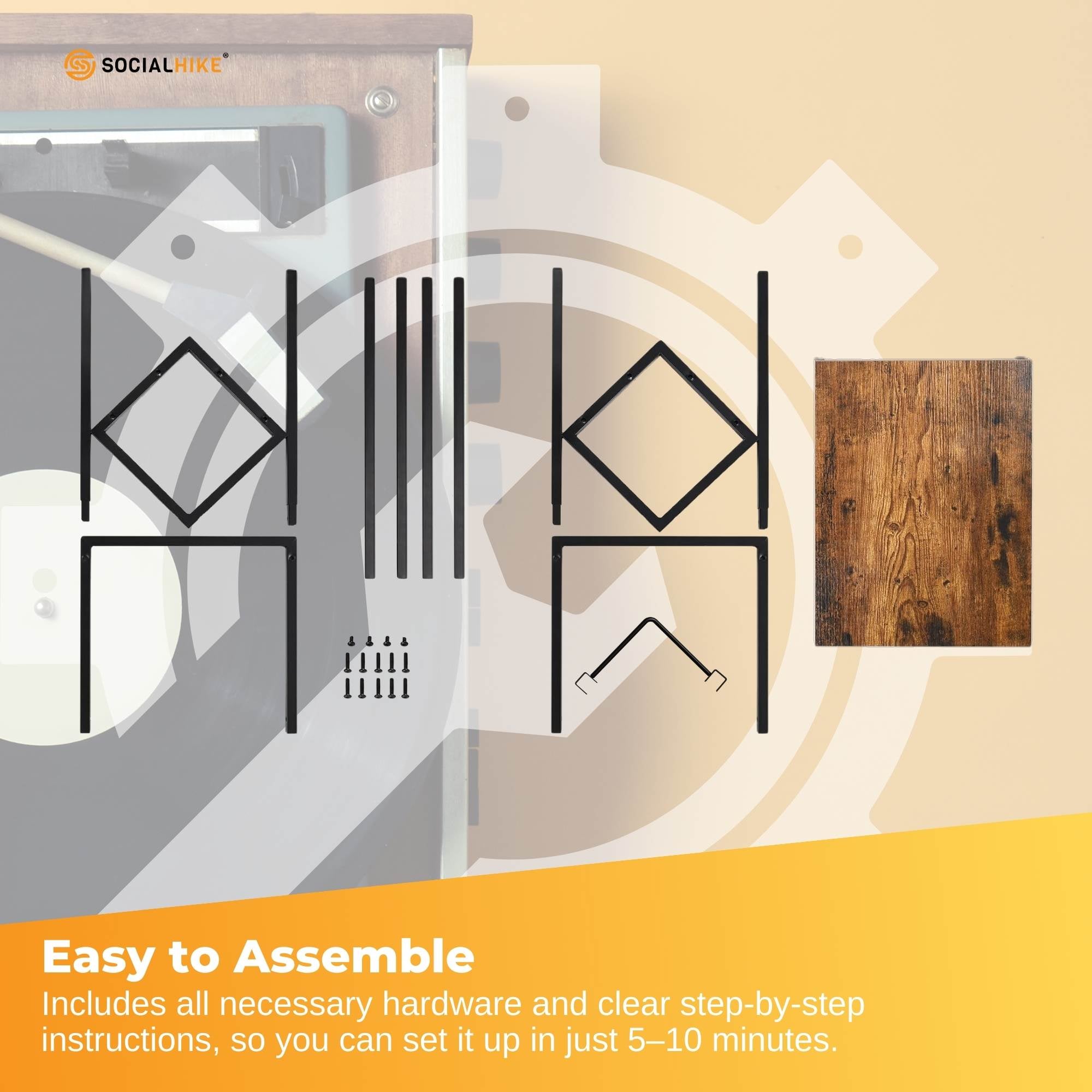 Social Hike Turntable Player Stand & Vinyl LP Record Album Storage – Black Metal