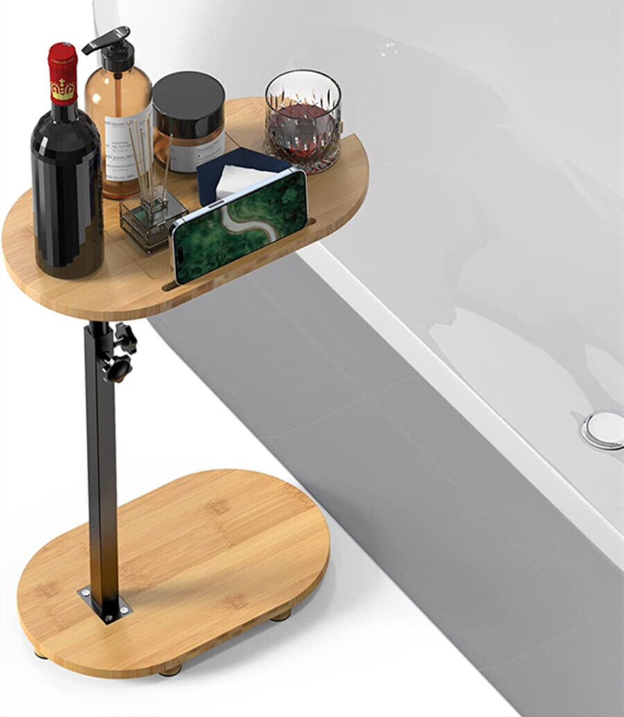This sofa side end table is a versatile and functional addition to your living space. It can serve as a laptop holder, bedside stand, or desk bracket, making it suitable for use in the living room or bedroom. Crafted from natural bamboo, it combines durability with eco-friendly elegance, adding a stylish touch to your home decor. The table features adjustable metal legs and anti-slip stickers to ensure stability and a secure fit for various settings.