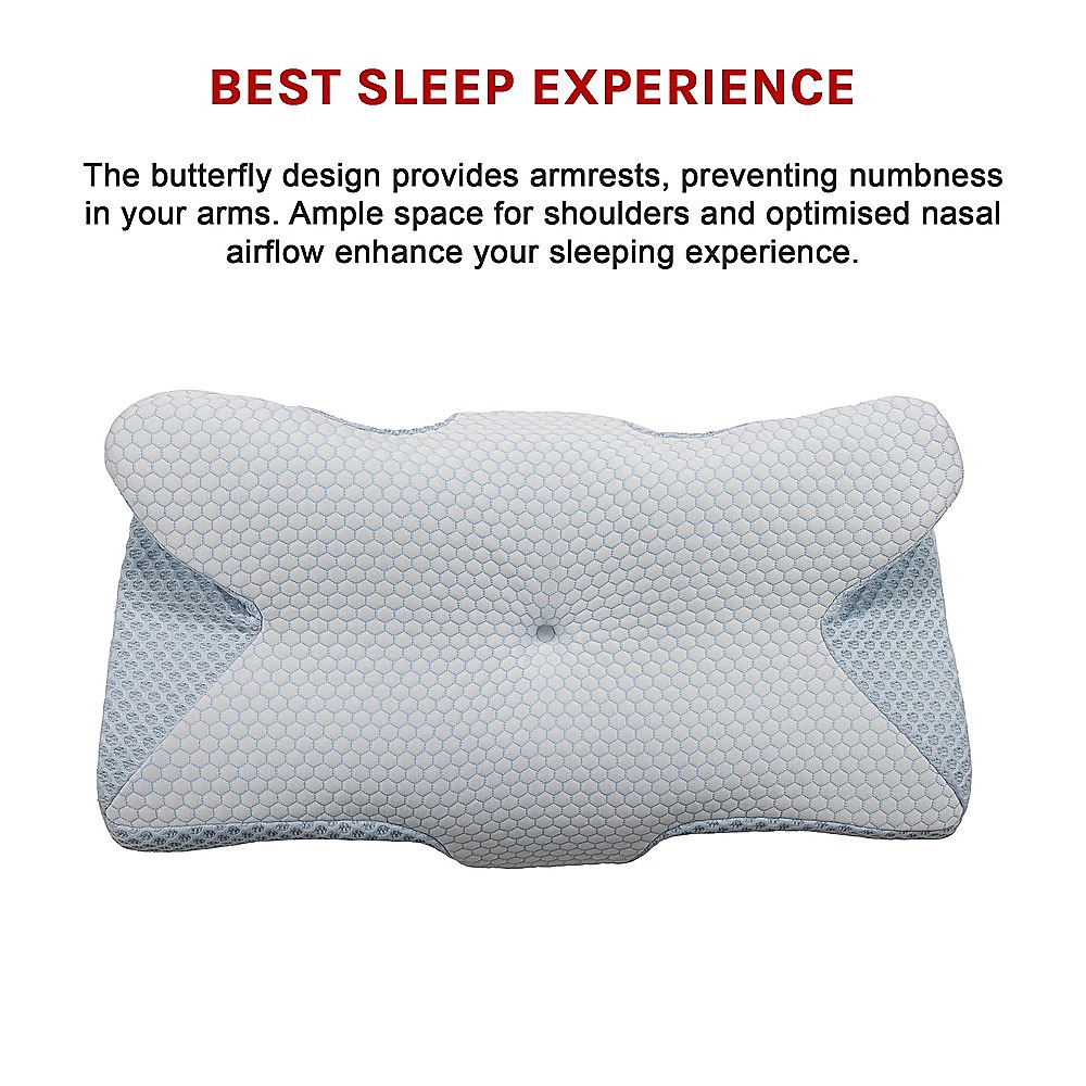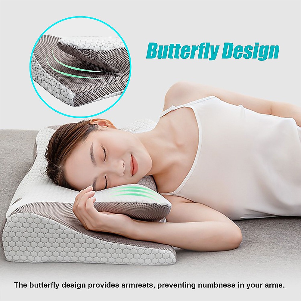 This ergonomic cervical pillow is designed to provide effective neck pain relief and improve sleep quality. It features a contour shape that supports the head, neck, shoulders, and back, promoting proper spine alignment. The pillow’s versatile design allows for comfortable position shifts, helping to reduce neck discomfort and wake up feeling refreshed. It includes two different contour heights on each side to suit various sleeping preferences.