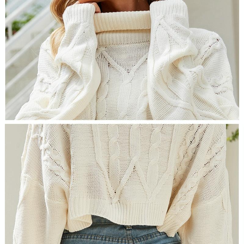 • 1 x Solid Colour High Neck Pullover Knitted Top Short Stranded Flowers Knitted Sweater