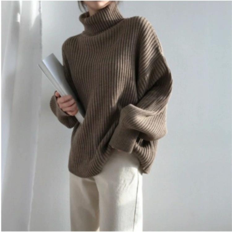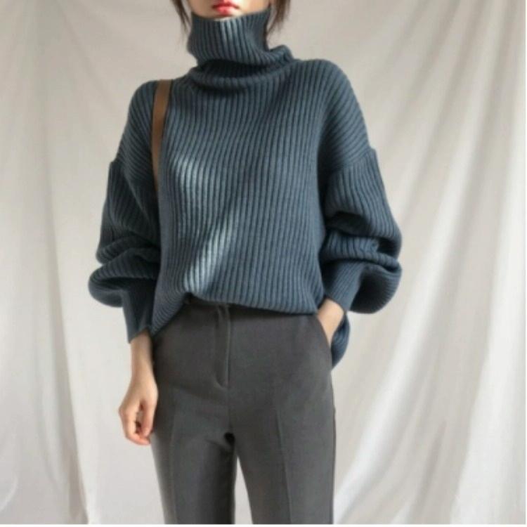 This casual sweater features a solid colour design with a high collar and long sleeves, offering a thick and warm feel. Its loose, single-piece style makes it suitable for various casual occasions, providing comfort and versatility.