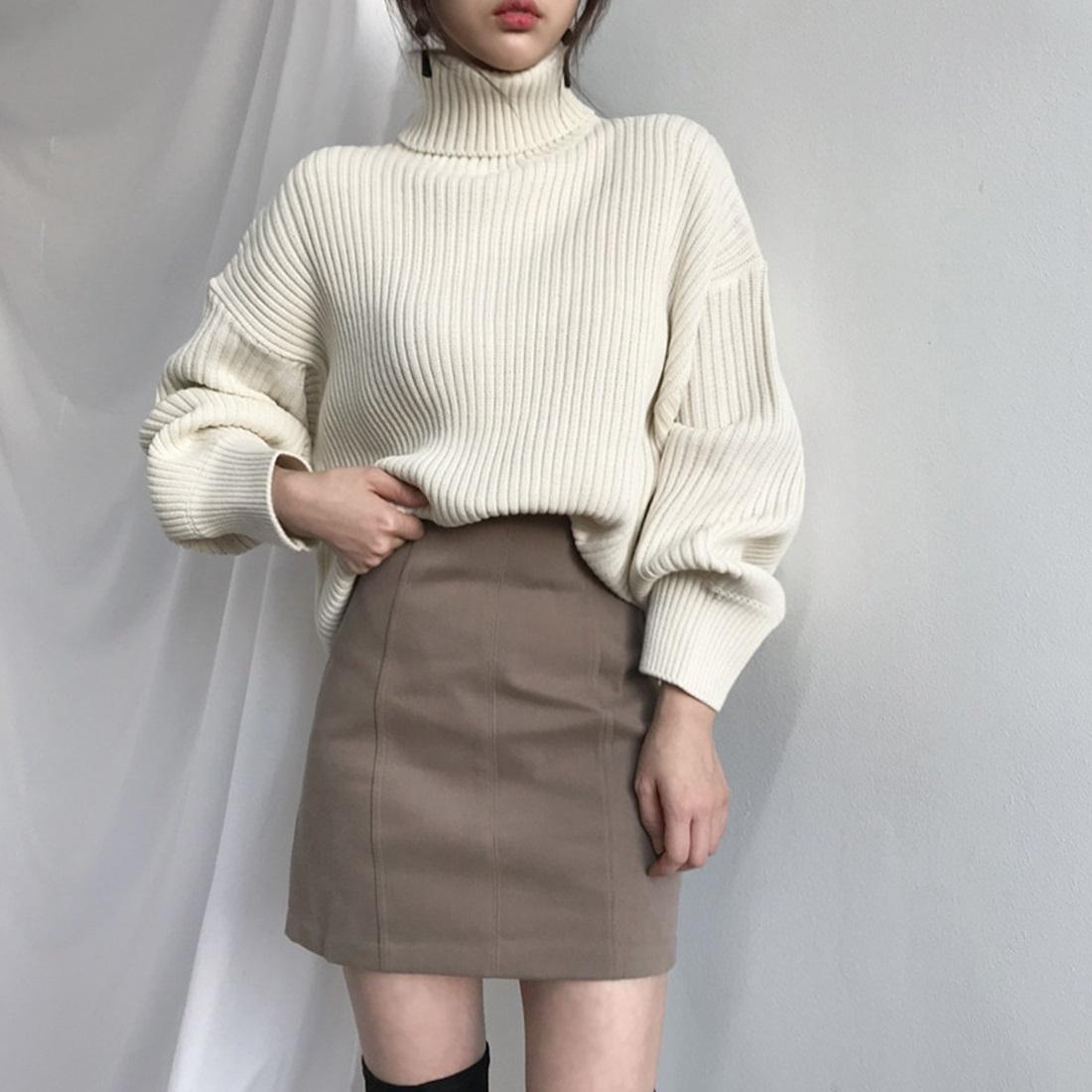 • 1 x solid colour turtleneck outer wear pullover casual sweater in beige