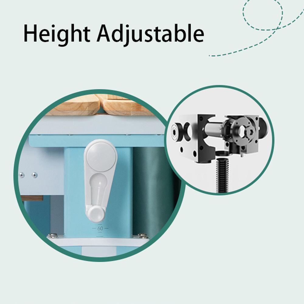 - Adjustable height to accommodate growing children, secured with locking rotary knobs