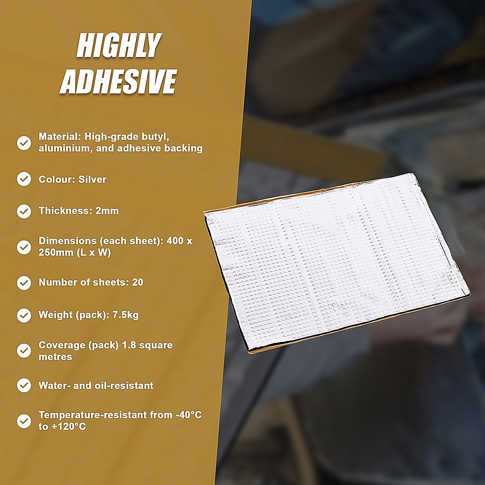 This sound deadening mat is designed to reduce noise and vibrations inside your vehicle, providing a quieter and more comfortable driving experience. It is easy to install with a self-adhesive backing and can be cut to fit various surfaces, making it suitable for different parts of your car’s interior.