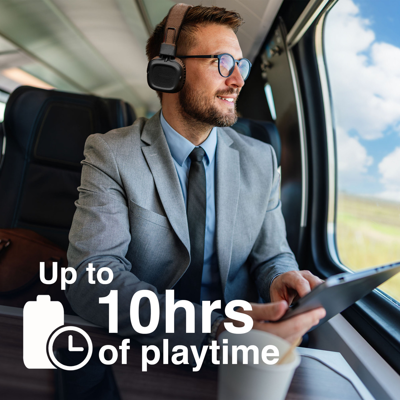 - Up to 10 hours of playback time on a single charge
