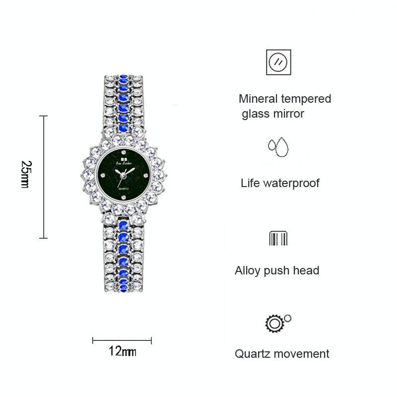 This elegant women’s watch features a sparkling diamond chain design with intricate embellishments, combining style and durability for everyday wear. It offers a delicate appearance with a touch of luxury, suitable for various occasions.