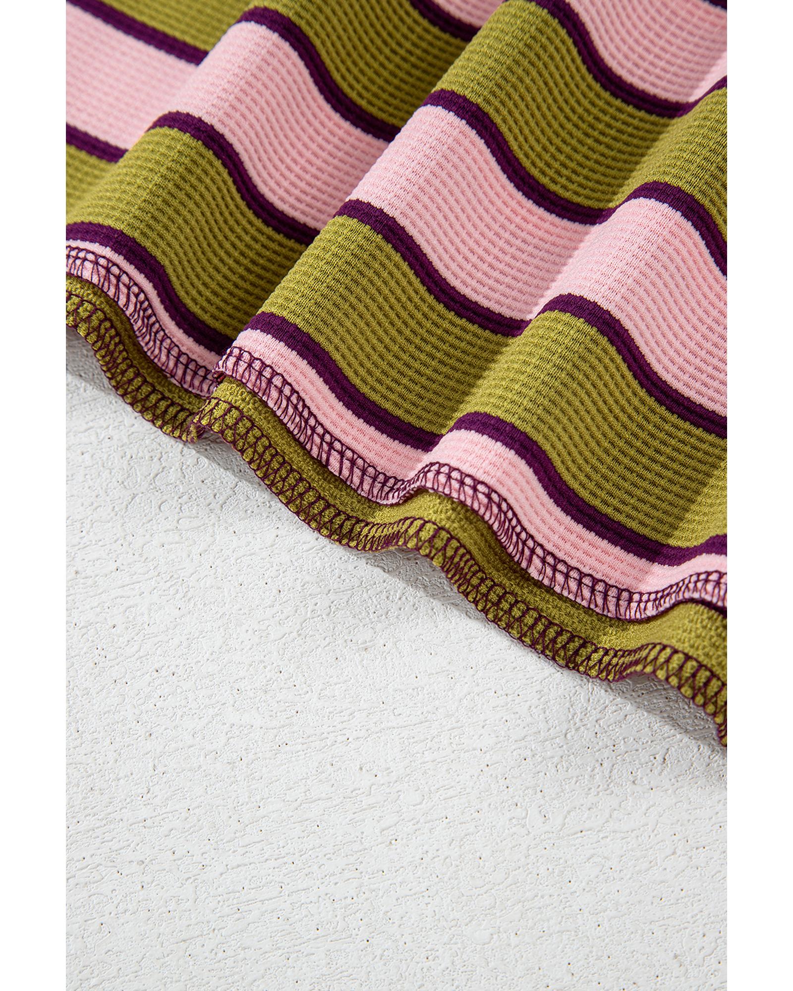 This long sleeve top features a stylish combination of spinach green clashing stripes and a waffle texture, designed for a trendy and fitted look. It is perfect for those who appreciate contemporary fashion and comfort.