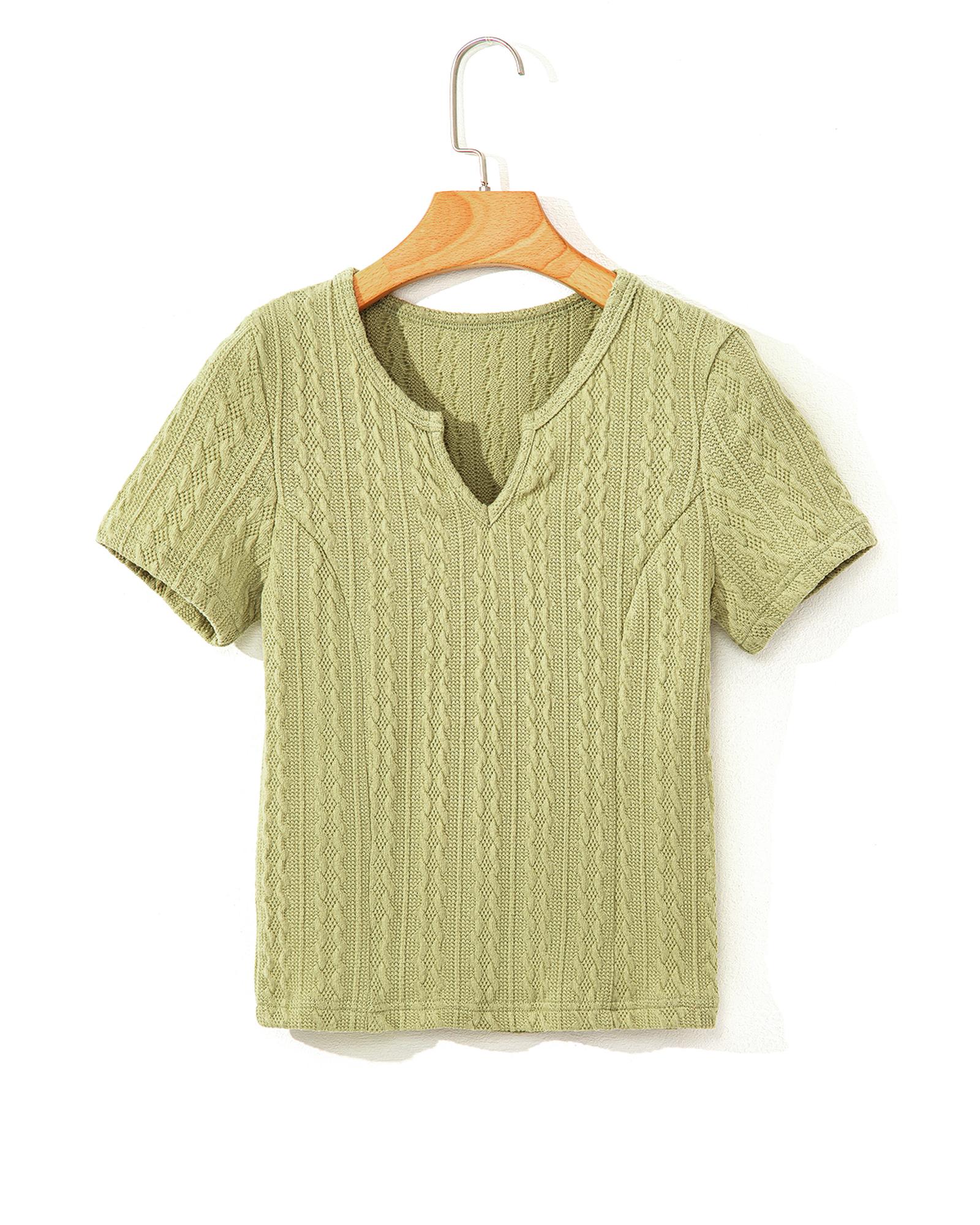 This textured knit T-shirt features a slim fit design with a modern notch V-neck, offering a sophisticated and stylish appearance. Crafted from high-quality materials, it combines durability with comfort, making it suitable for various occasions. Available in multiple sizes to ensure a perfect fit.
