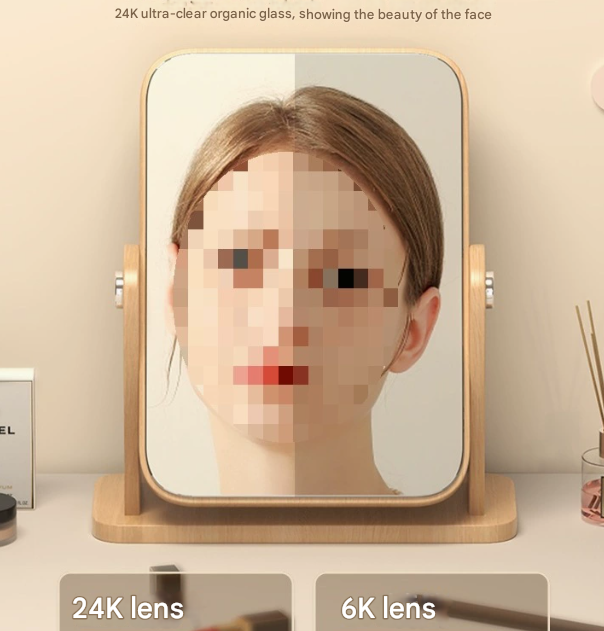 This large tabletop mirror features a stylish and functional design, perfect for makeup application, skincare, and grooming routines. Its spacious viewing surface and adjustable swivel mechanism make it a versatile addition to any vanity, bedroom, or dorm room. Crafted with durable materials, it combines elegance with stability for everyday use.