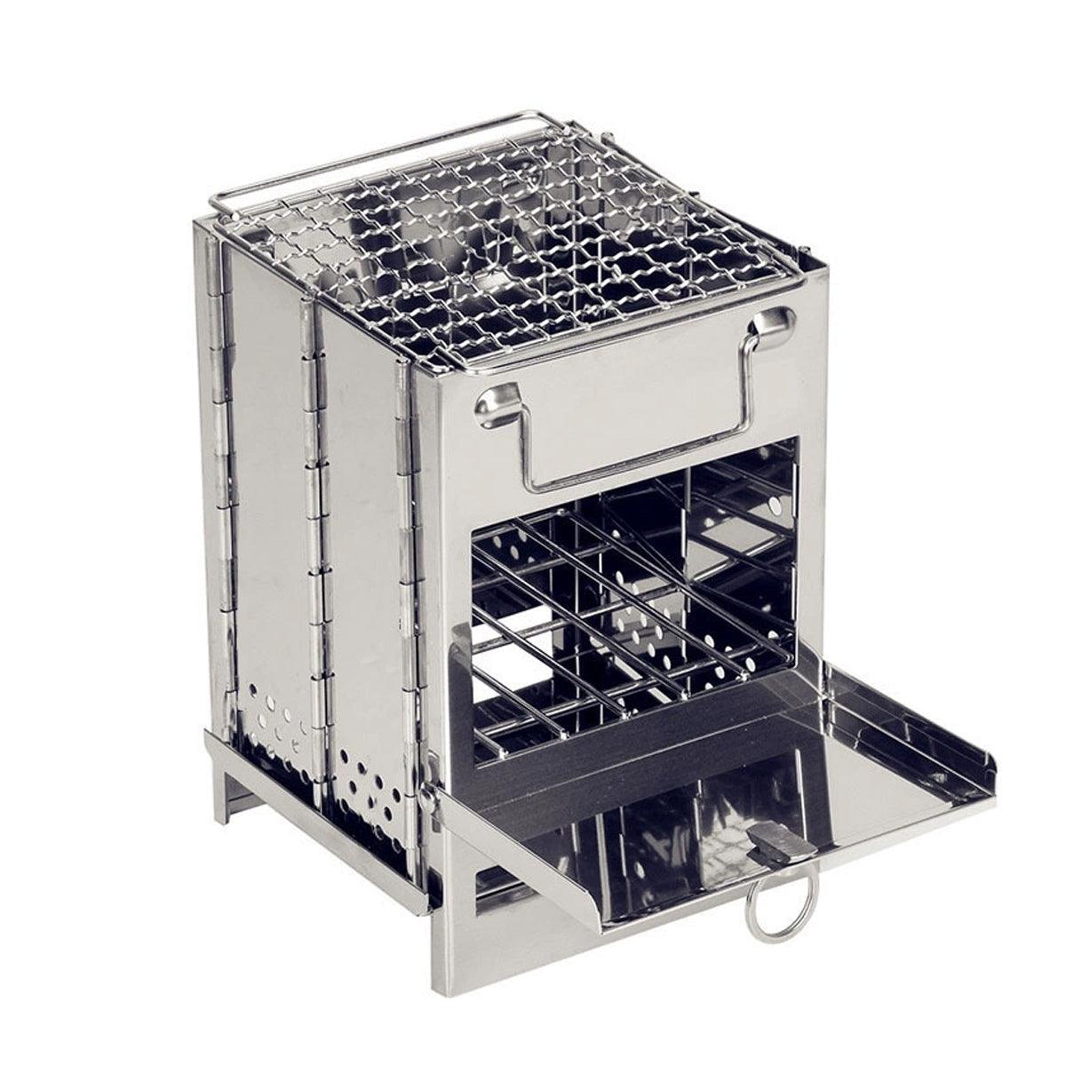 Square Wood Stove Mini Folding Grill Outdoor Camping Portable BBQ Cooking Rack