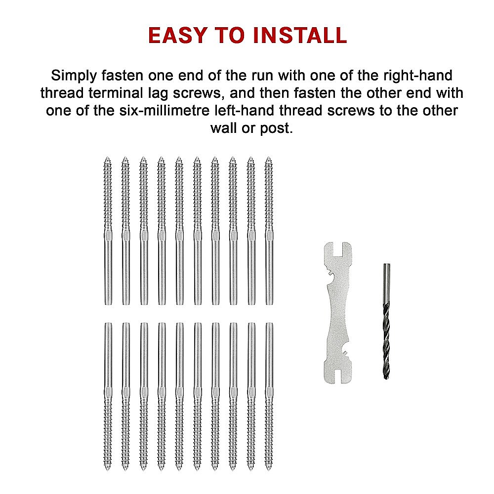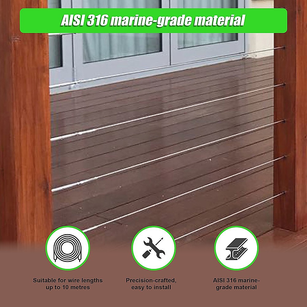 This stainless steel DIY rope balustrade kit is designed for easy installation and durability, suitable for both residential and commercial applications. It includes components that work with wire runs up to 10 meters in length, providing a secure and stylish railing solution.