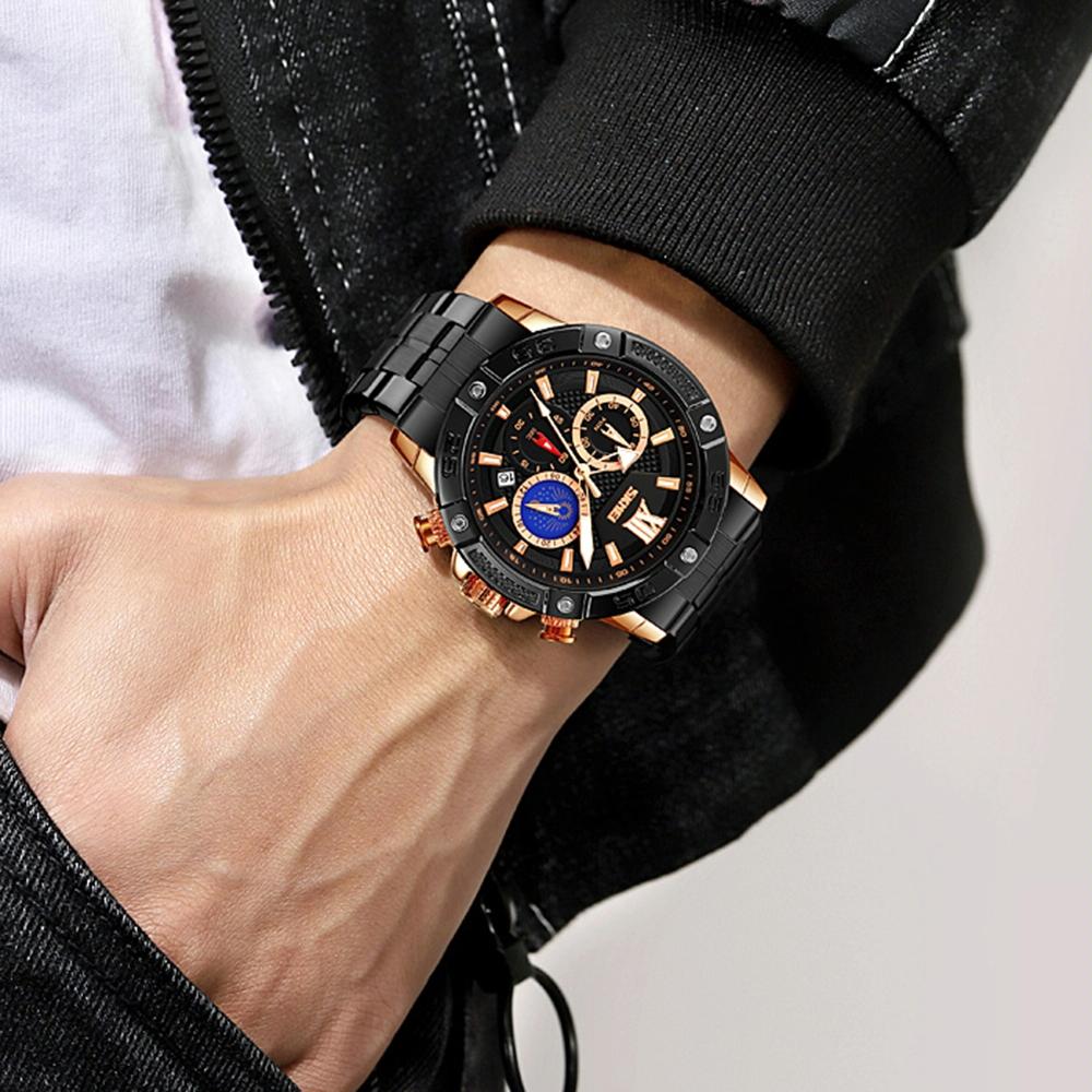 Stainless Steel Men Moonphase Quartz Watch with Strap – Black