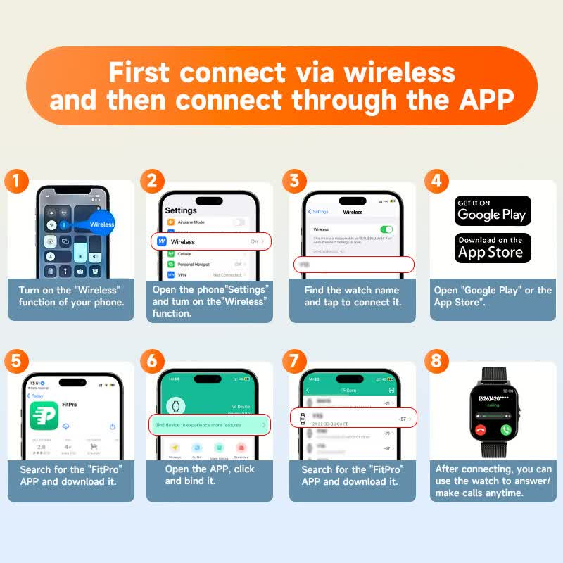- Wireless call function for answering calls directly from the watch