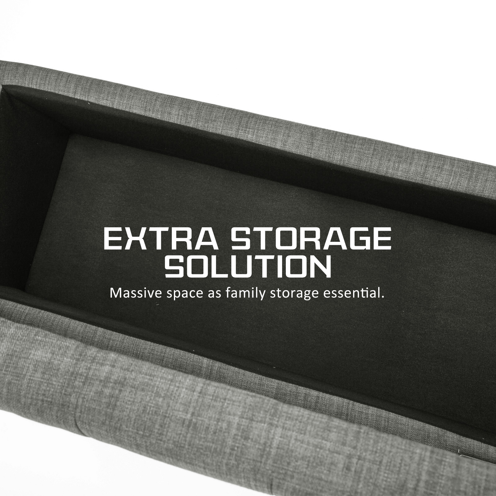 Storage Ottoman Stool 102cm Fabric DARK GREY