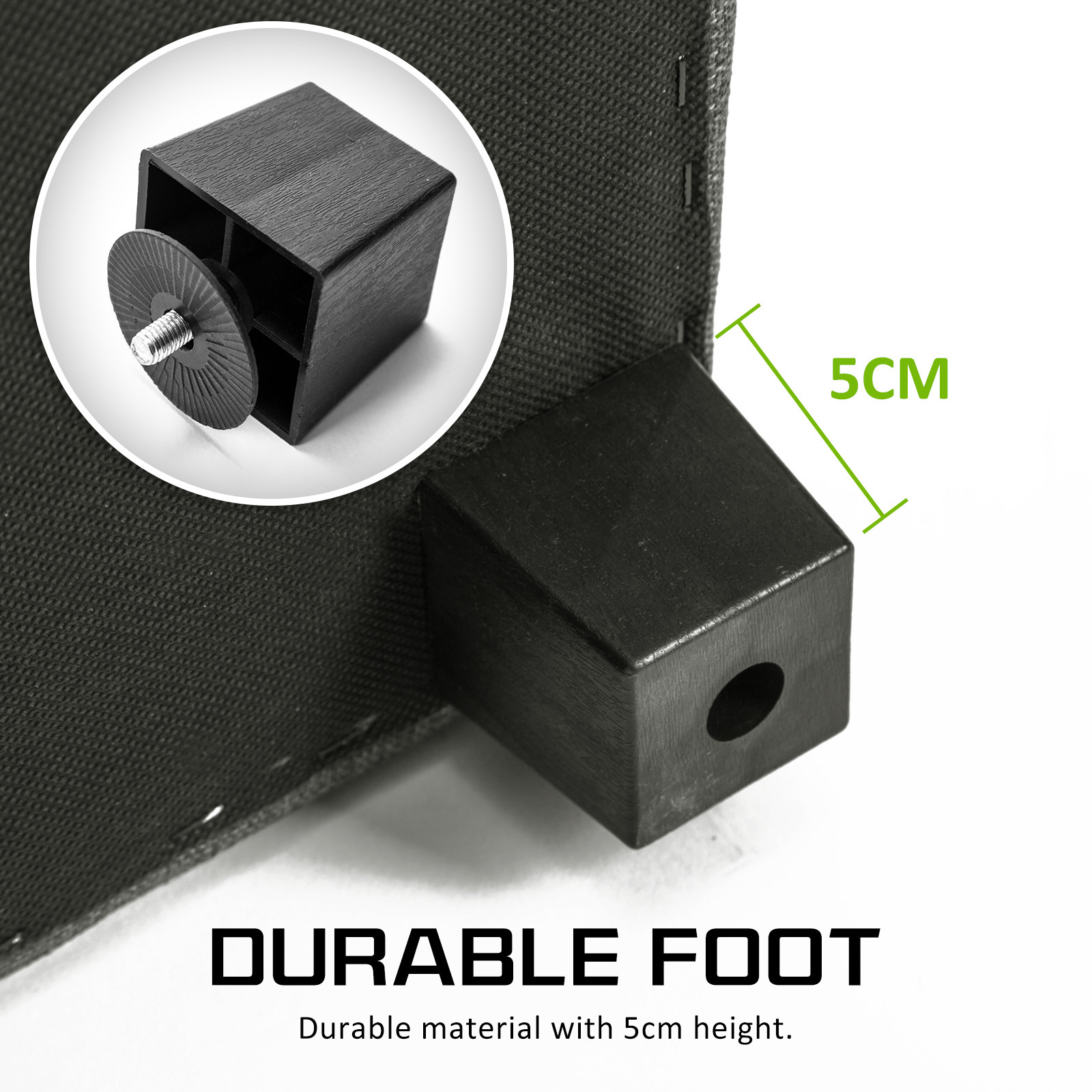 - Detachable rubber legs to protect flooring and prevent slipping