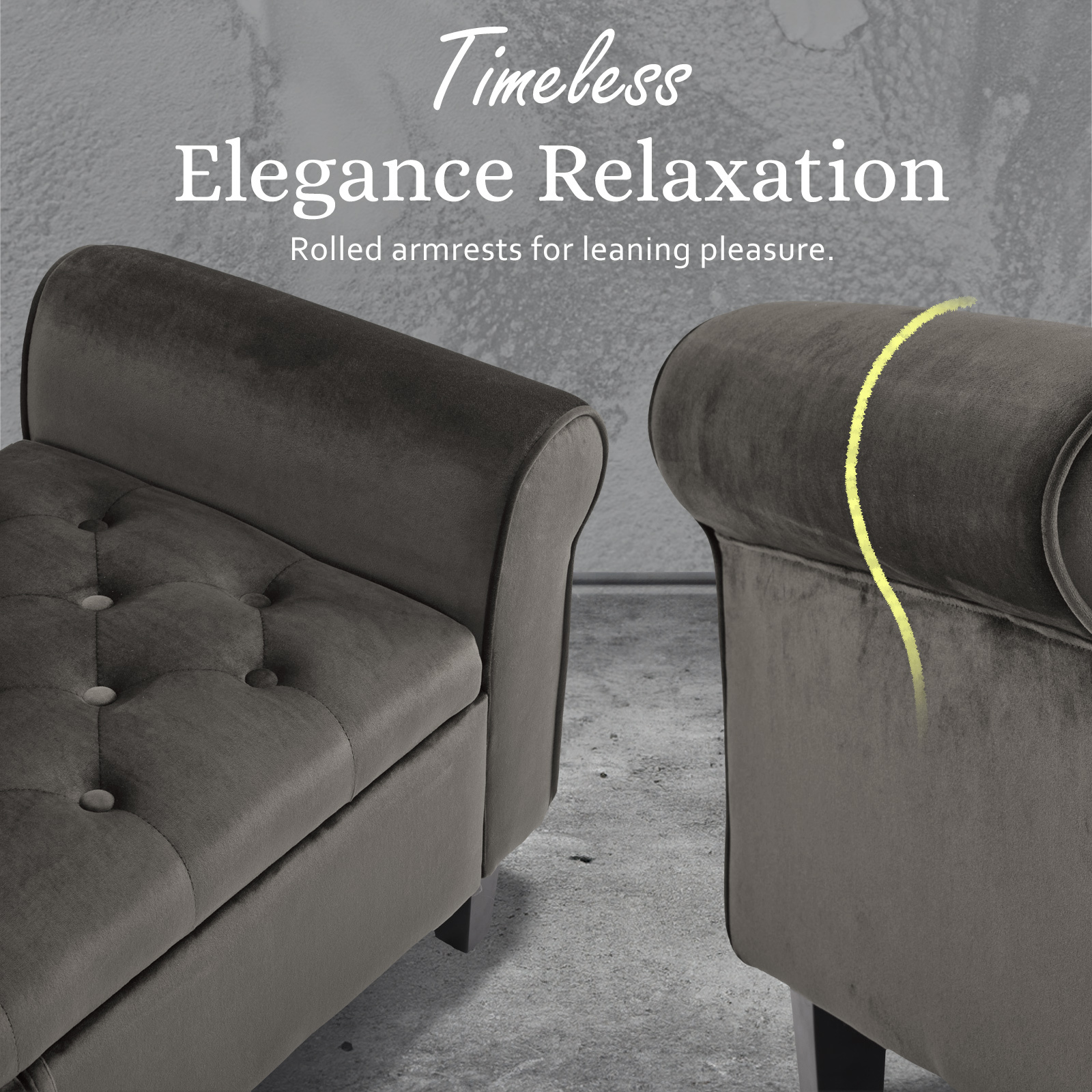Storage Ottoman Stool Arm Bench Seat 132cm Velvet GREY