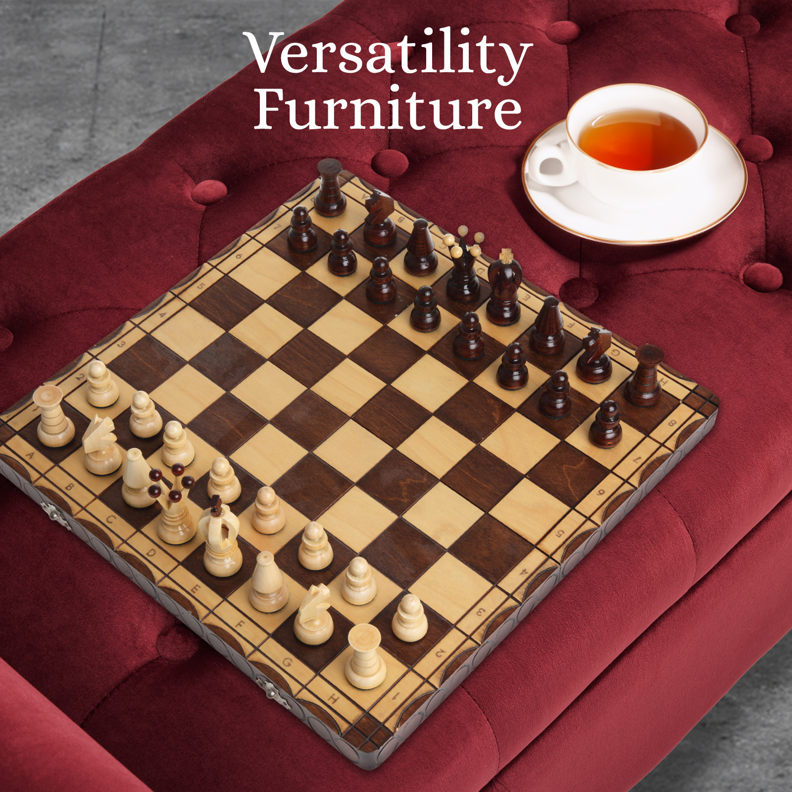 This storage ottoman combines style and functionality, making it a versatile addition to any living space. Upholstered in soft velvet and cushioned with foam, it offers a comfortable seat while providing ample storage inside. Supported by sturdy wooden legs, it features a classic design with modern touches, including tufted detailing and a rolled armrest.