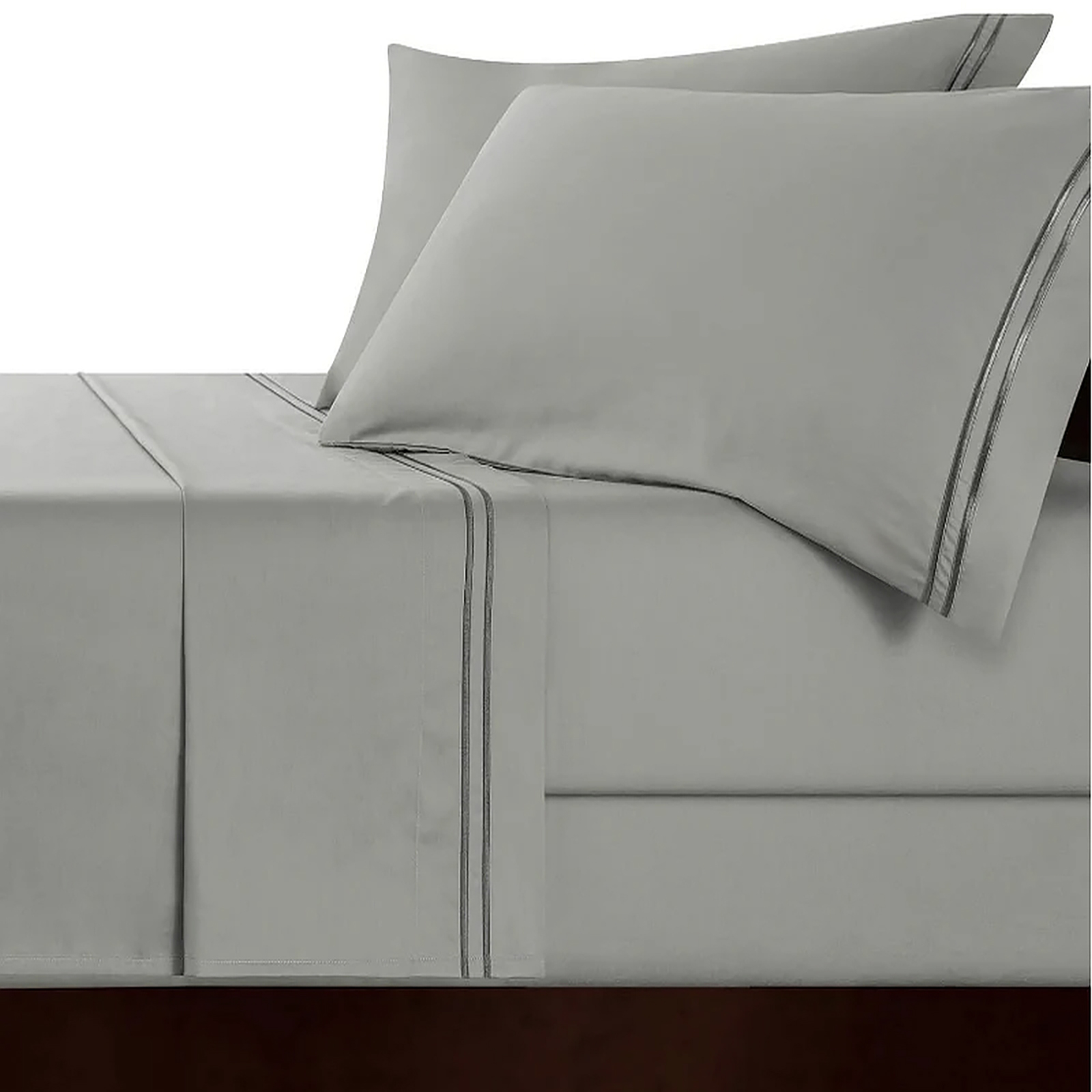 This sheet set is crafted from Egyptian cotton with a 1000 thread count, offering exceptional softness and durability. It features a classic embroidery detail on the hem of the flat sheet and pillowcases, adding a sophisticated touch. Designed to keep you comfortable year-round, this set combines timeless quality with modern elegance.