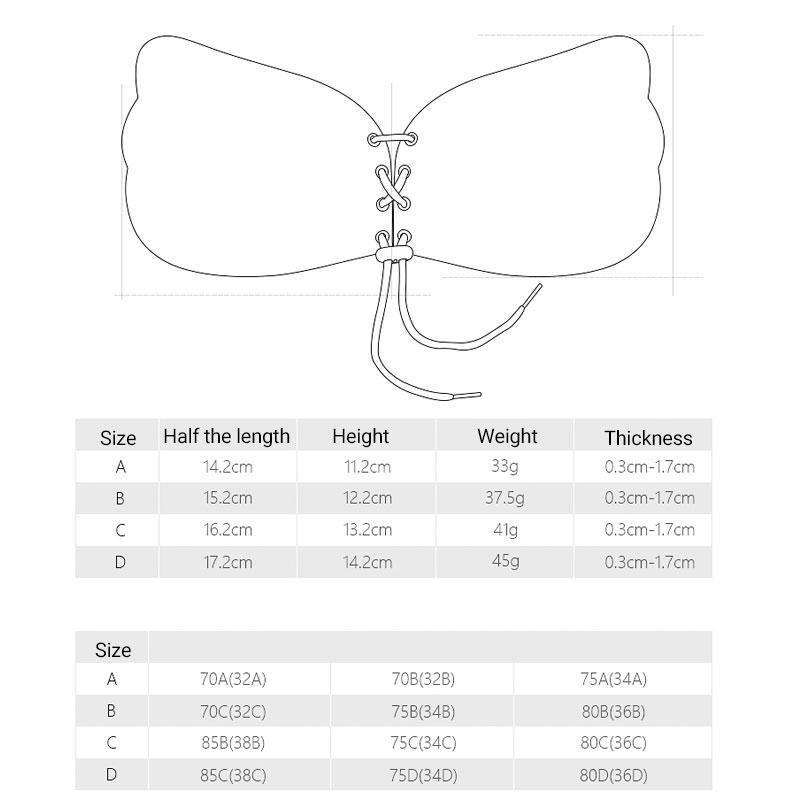 • 1 x Silicone strapless backless invisible bra