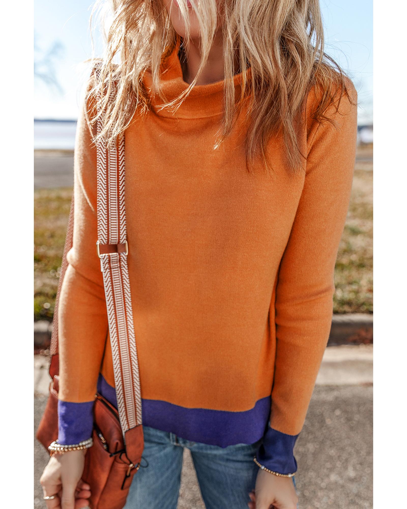 Straw Yellow Color Contrast Edge Mock Neck Slim Fit Sweater – L