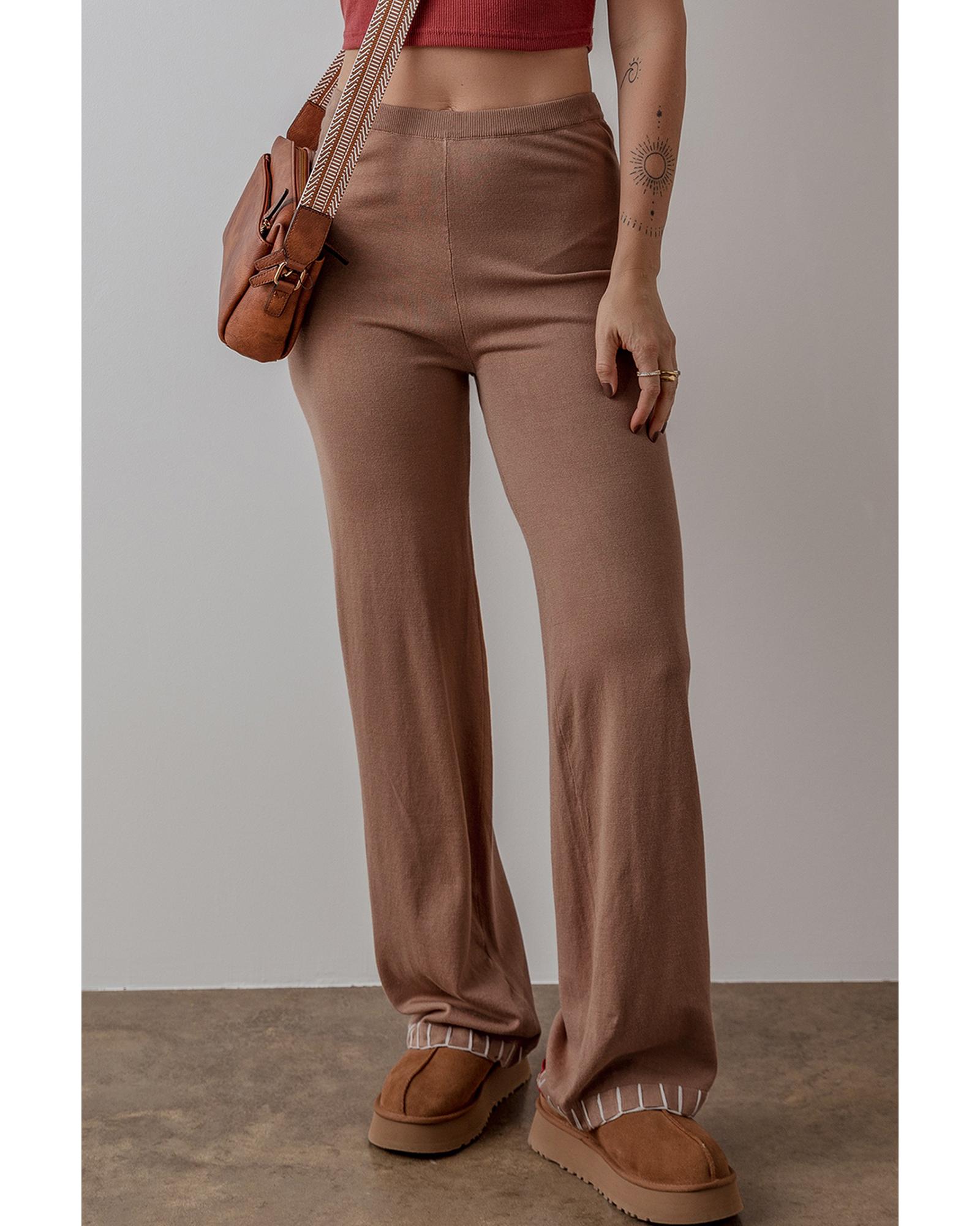 This high-waist straight leg knitted pants in a charming straw yellow color offers a stylish and versatile addition to your wardrobe. Designed with a trendy fitted look, these pants combine comfort and elegance, making them suitable for both casual and chic occasions.