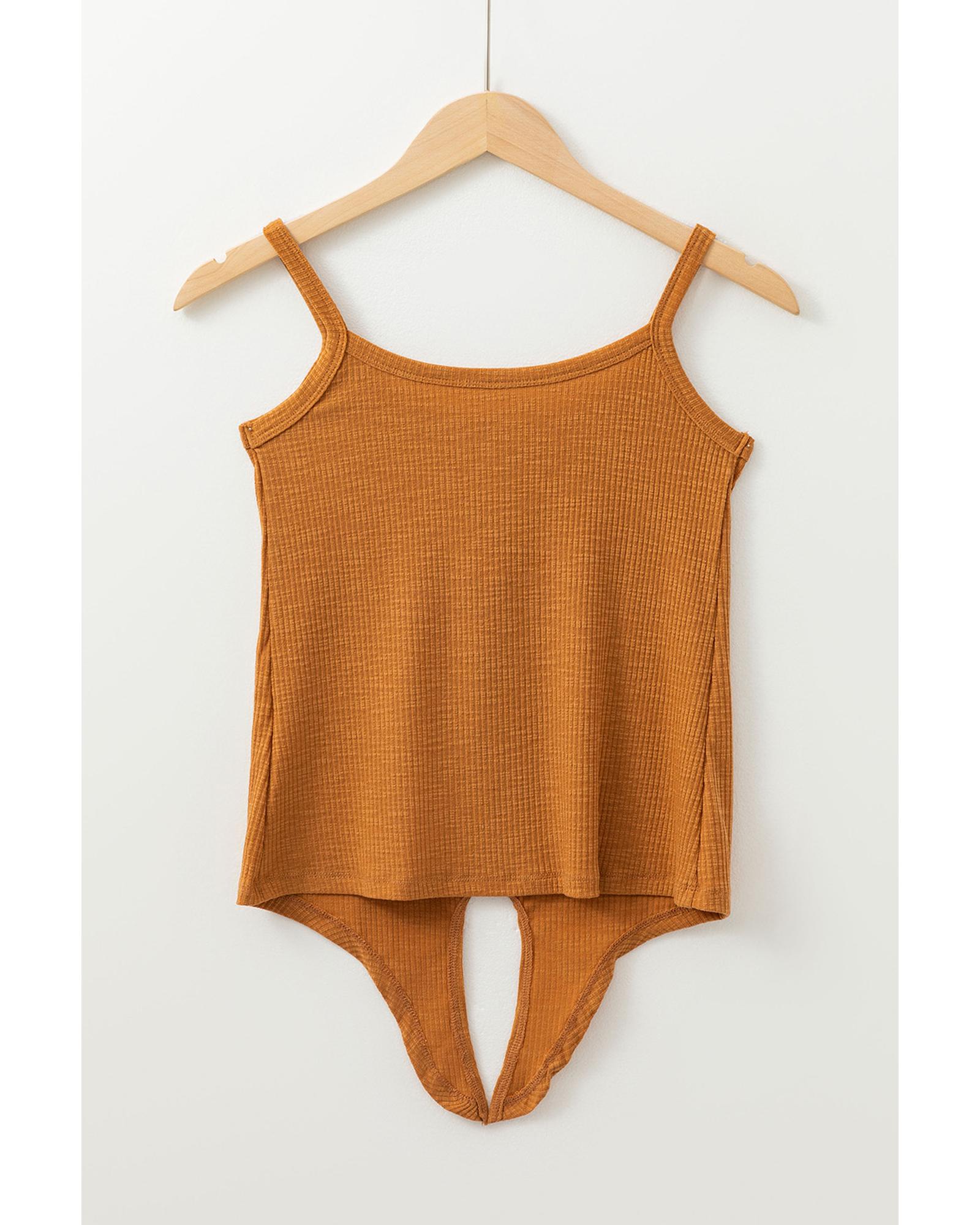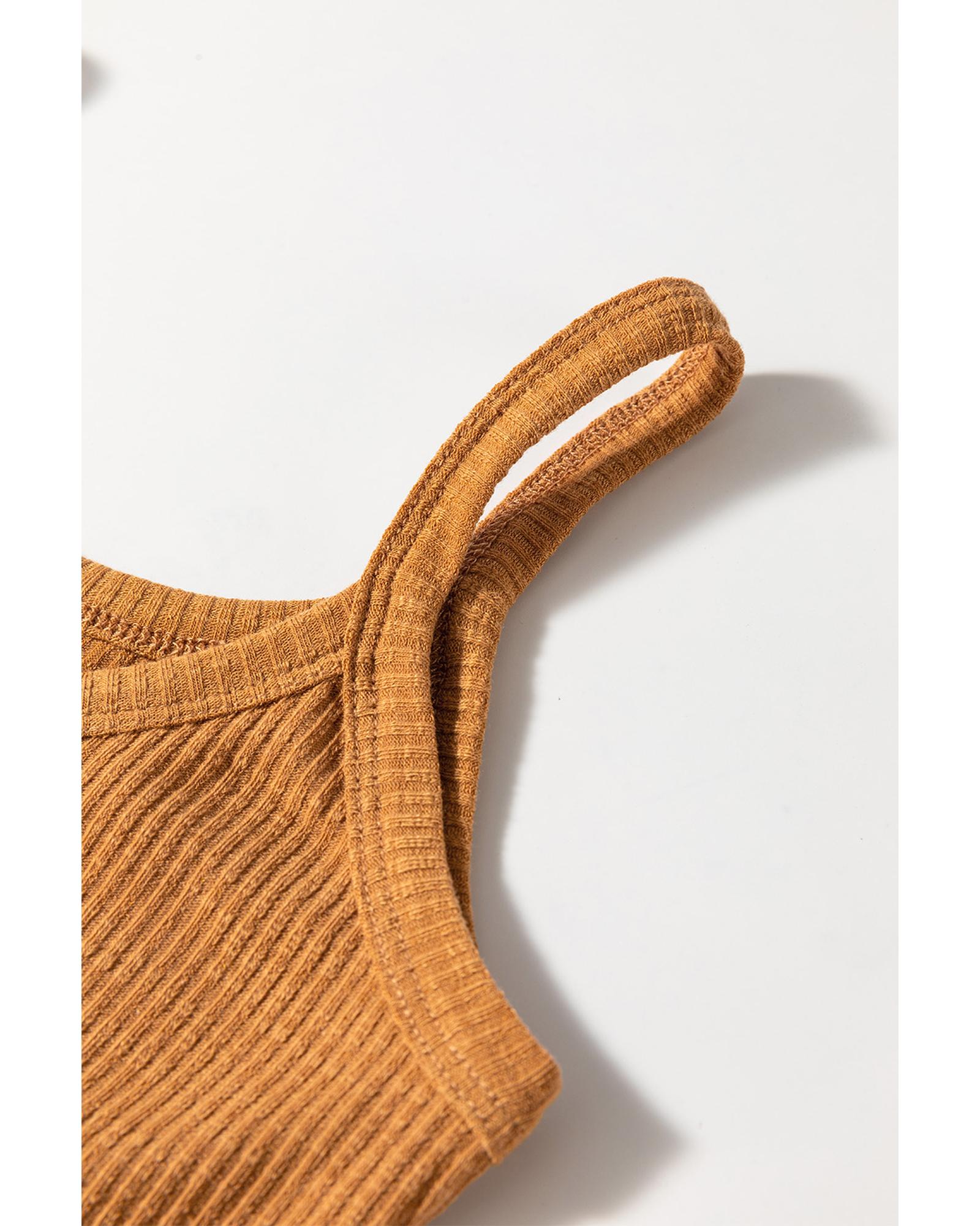Straw Yellow Ribbed Front Knot Buttoned Thin Strap Tank Top – XL