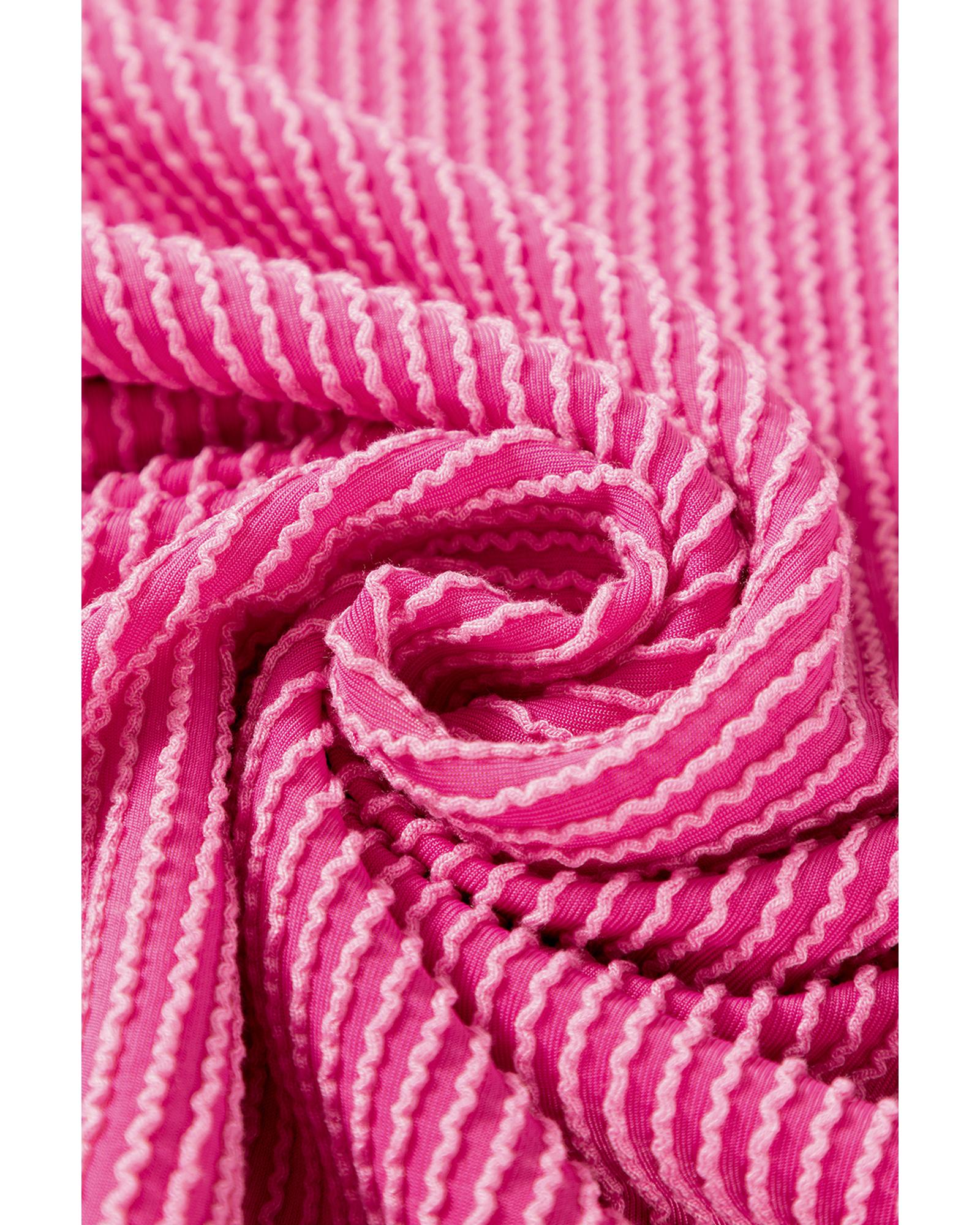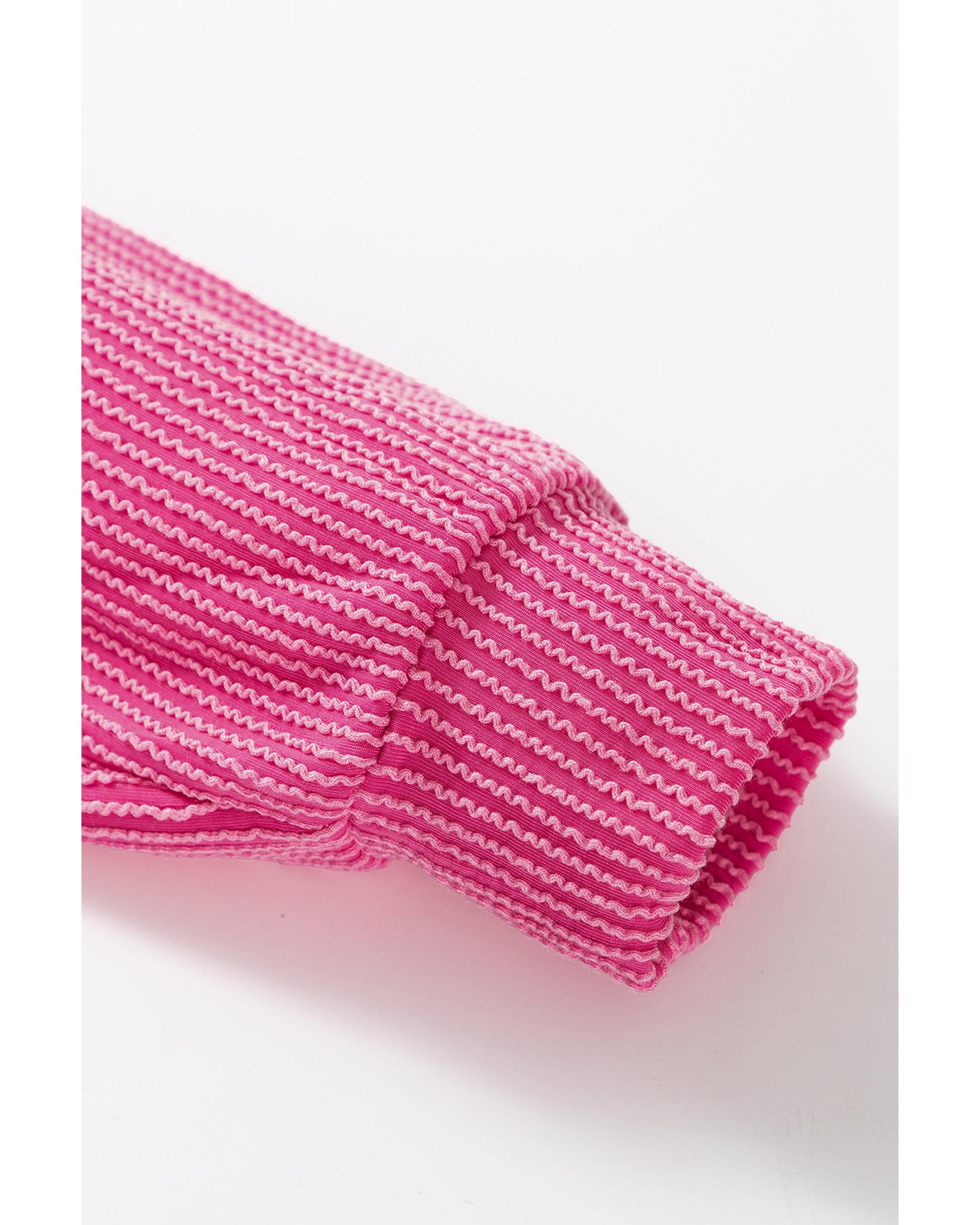 This stylish set features a textured long sleeve top and matching shorts in a vibrant strawberry pink color. Designed with a trendy fitted silhouette, it offers a versatile and fashionable look suitable for various occasions. The set combines comfort and style, making it a great addition to your wardrobe.