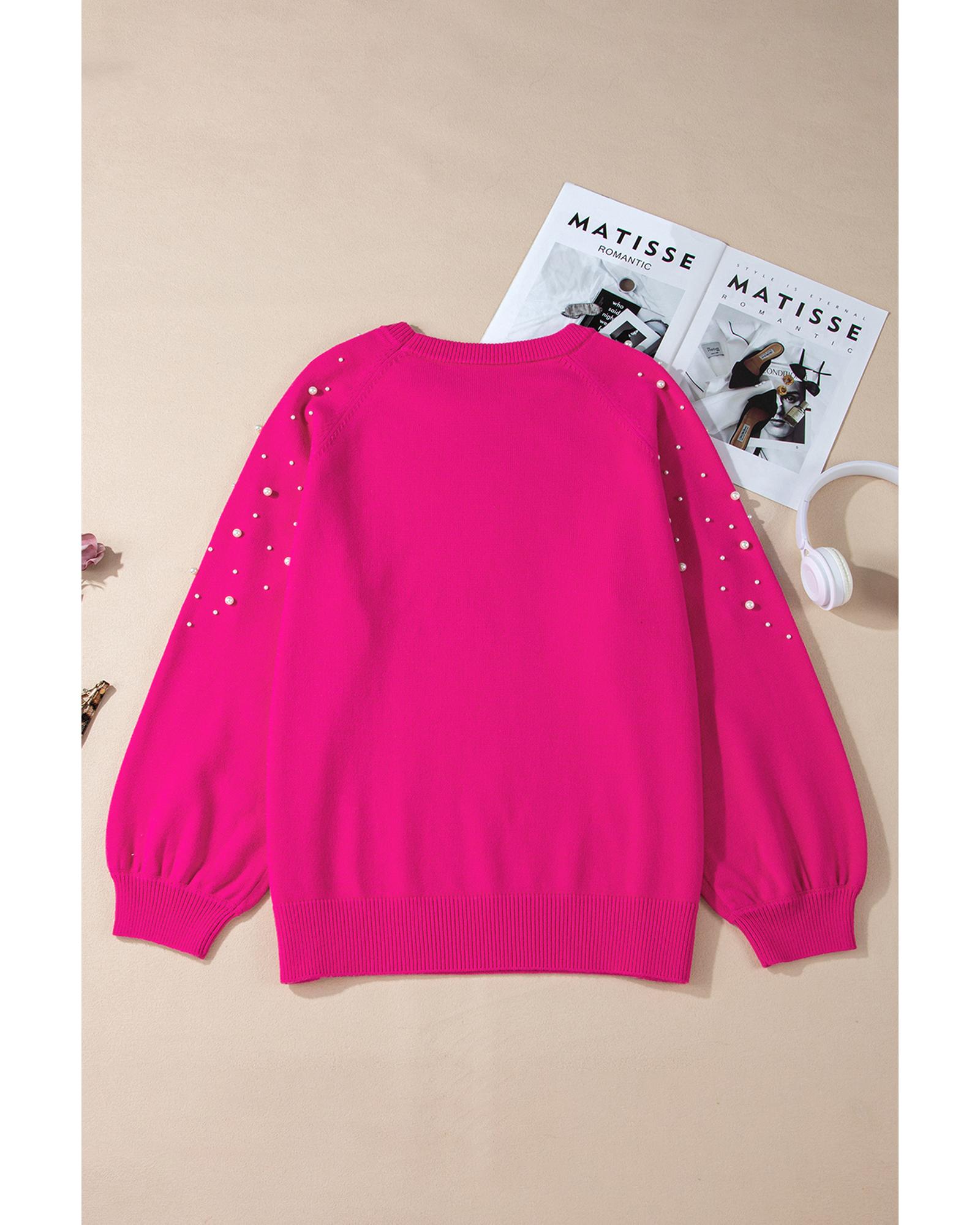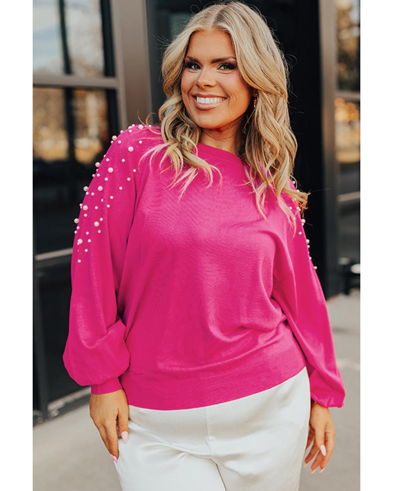 Strawberry Pink Pearled Decor Raglan Sleeve Plus Size Sweater – 2X