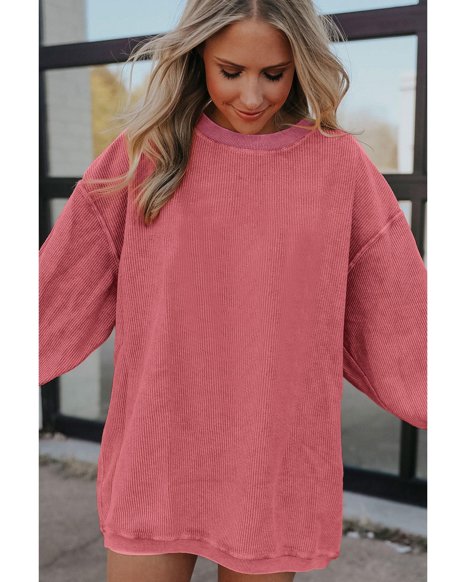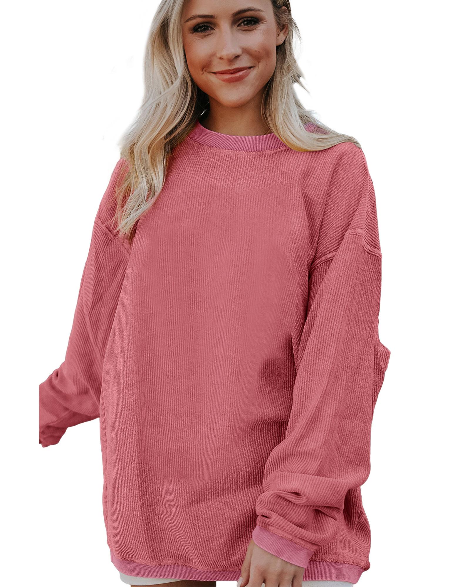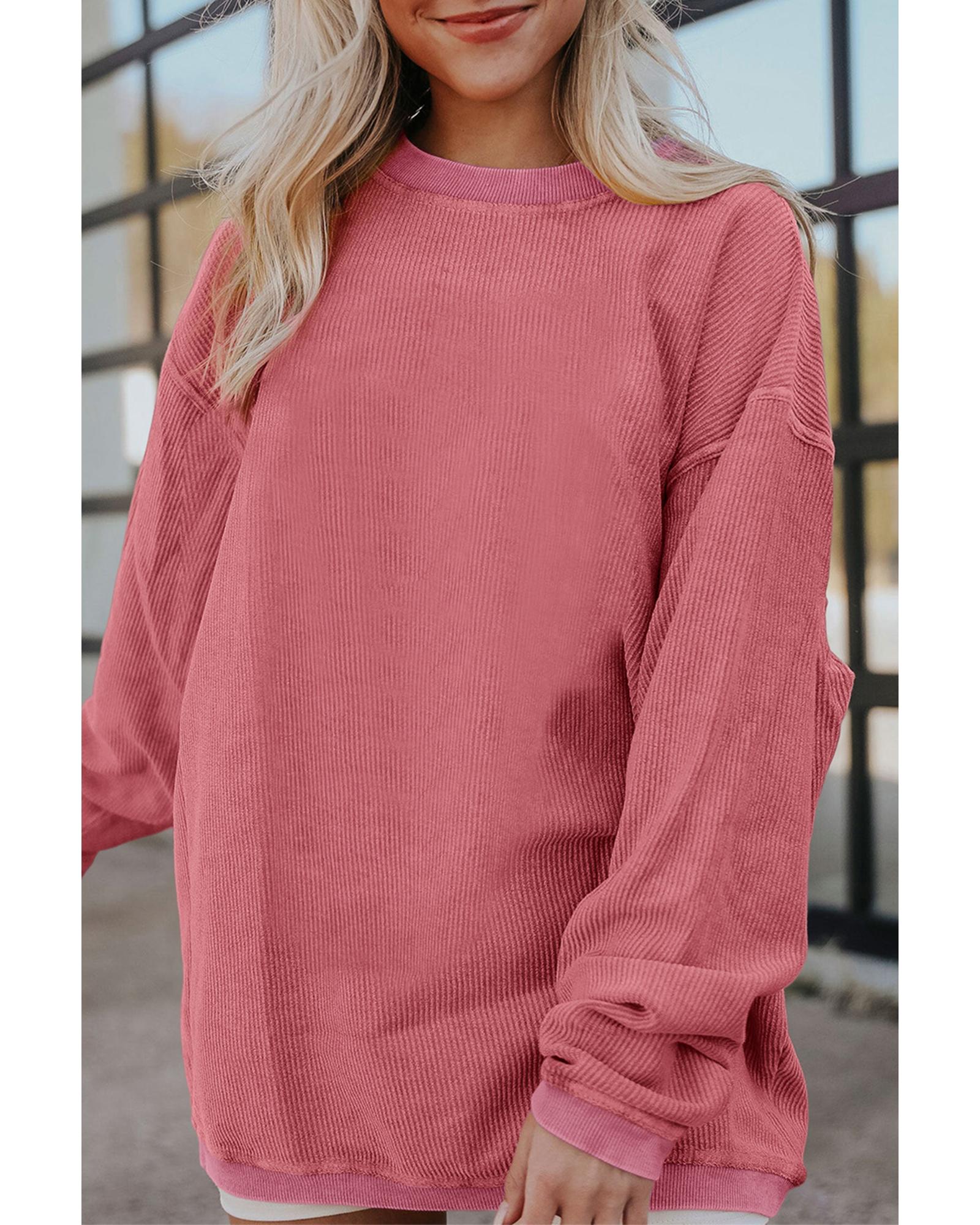 Strawberry Pink Ribbed Corded Oversized Sweatshirt – L