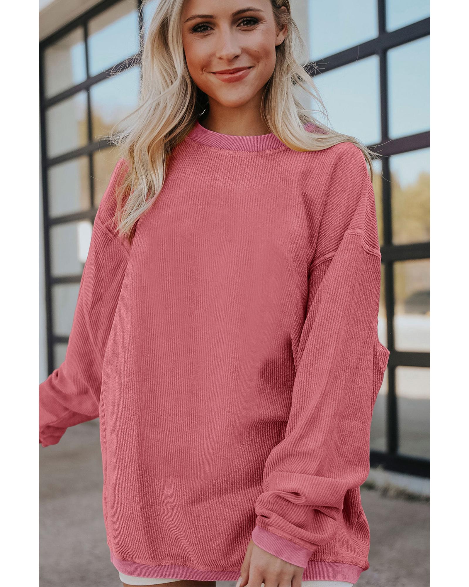 Strawberry Pink Ribbed Corded Oversized Sweatshirt – XL