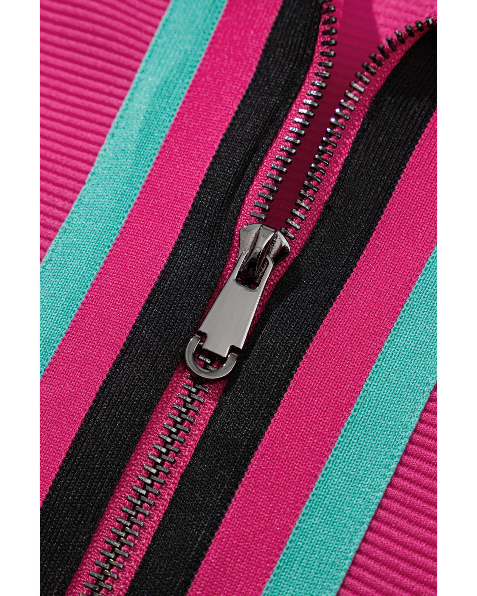 Strawberry Pink Striped Detail Flutter Sleeve Zipped Collar Short Set – S