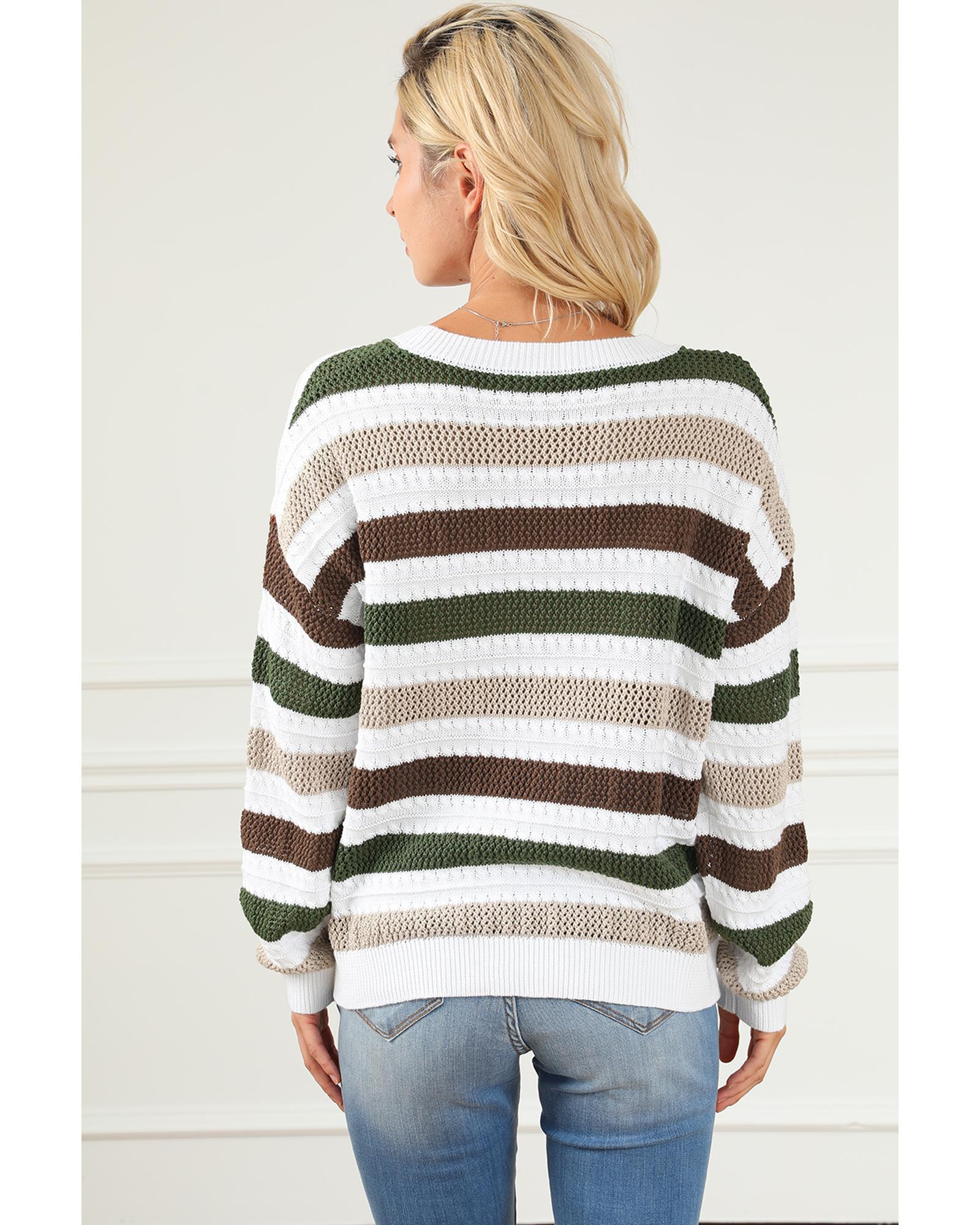 - Stripe crochet hollow-out knit sweater