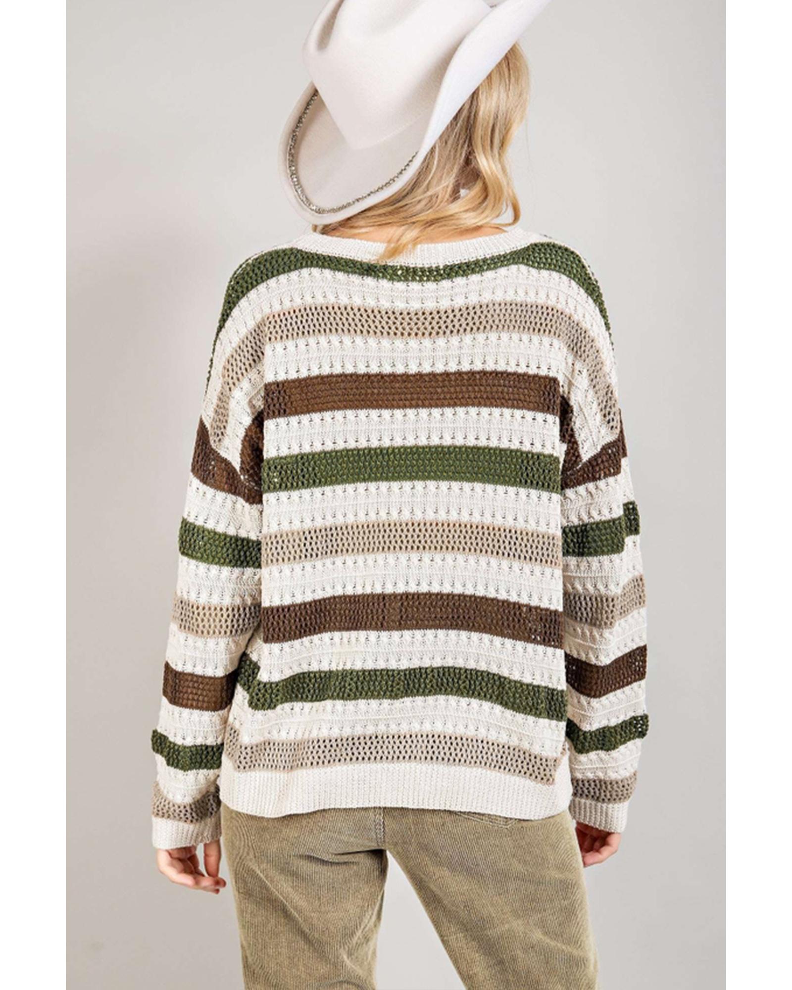 Stripe Crochet Hollow out Knit Sweater – M