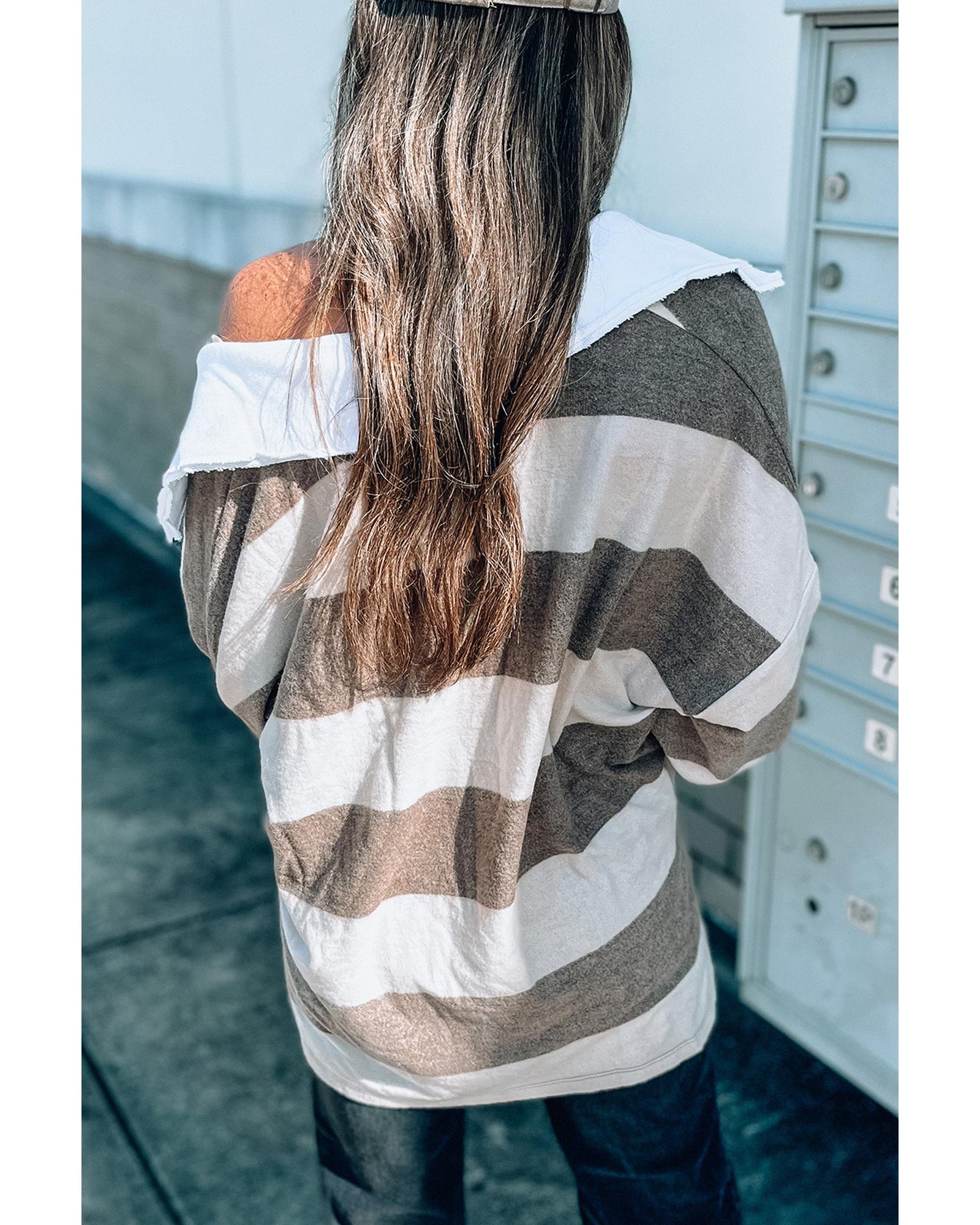 This oversized collared long sleeve top features a classic striped print and a trendy fitted design. It offers a versatile and chic look suitable for casual and stylish outfits, making it a great addition to your wardrobe.