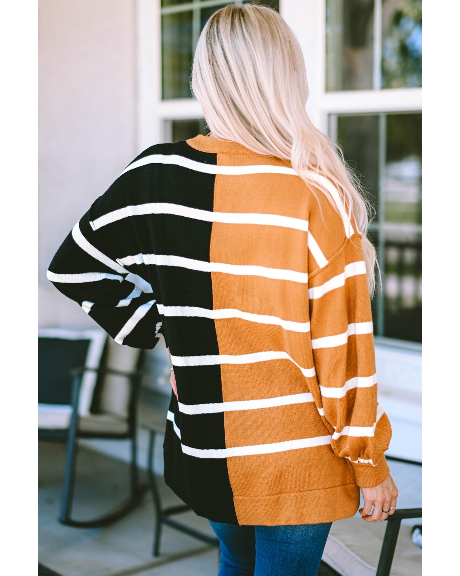 Stripe Oversized Contrast Printed Dropped Shoulder Top – L