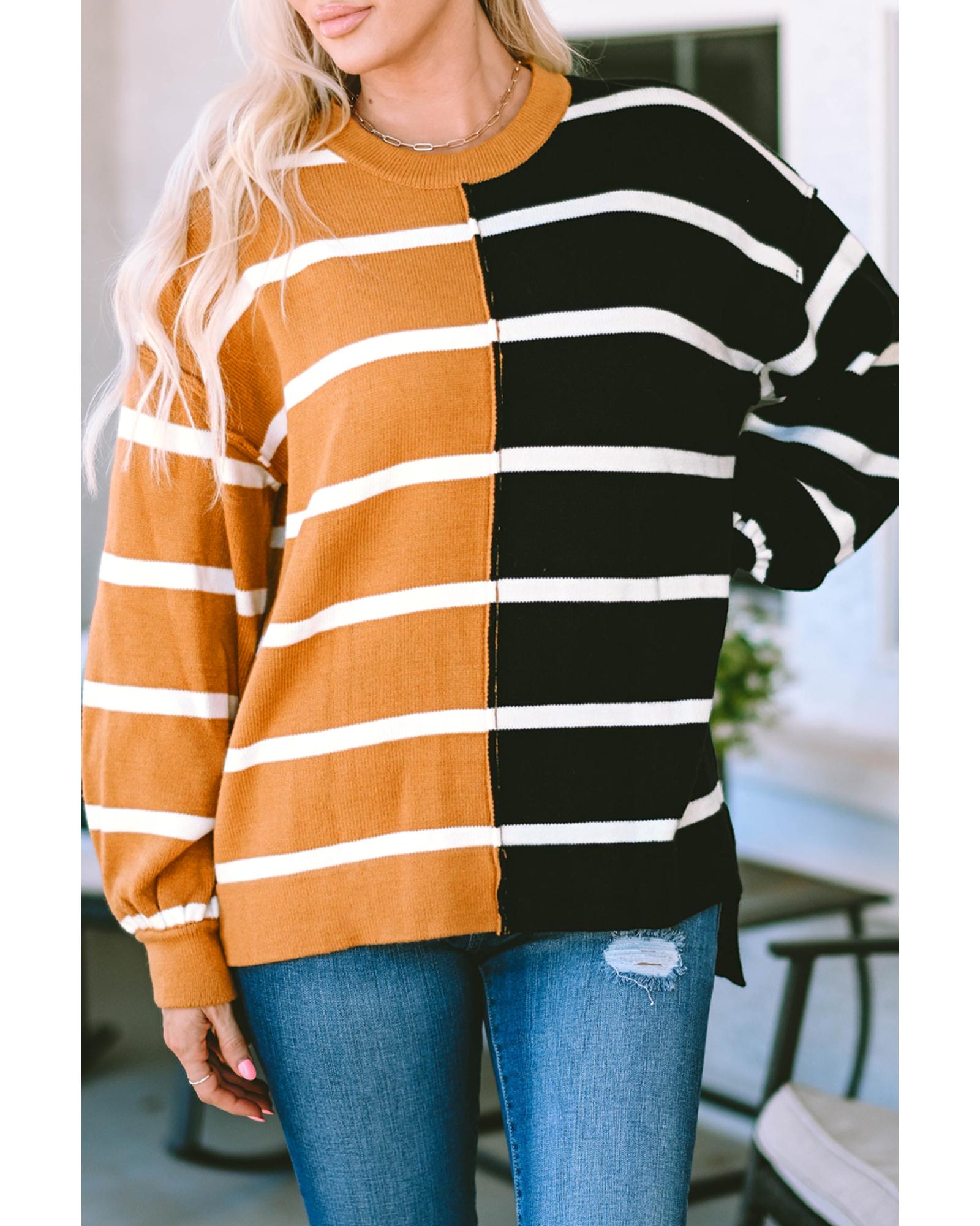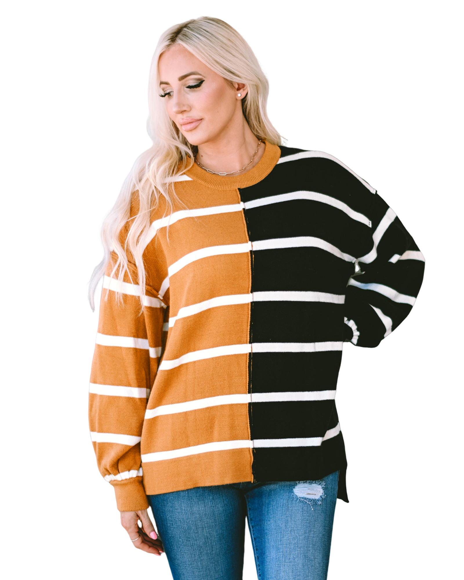 Stripe Oversized Contrast Printed Dropped Shoulder Top – M