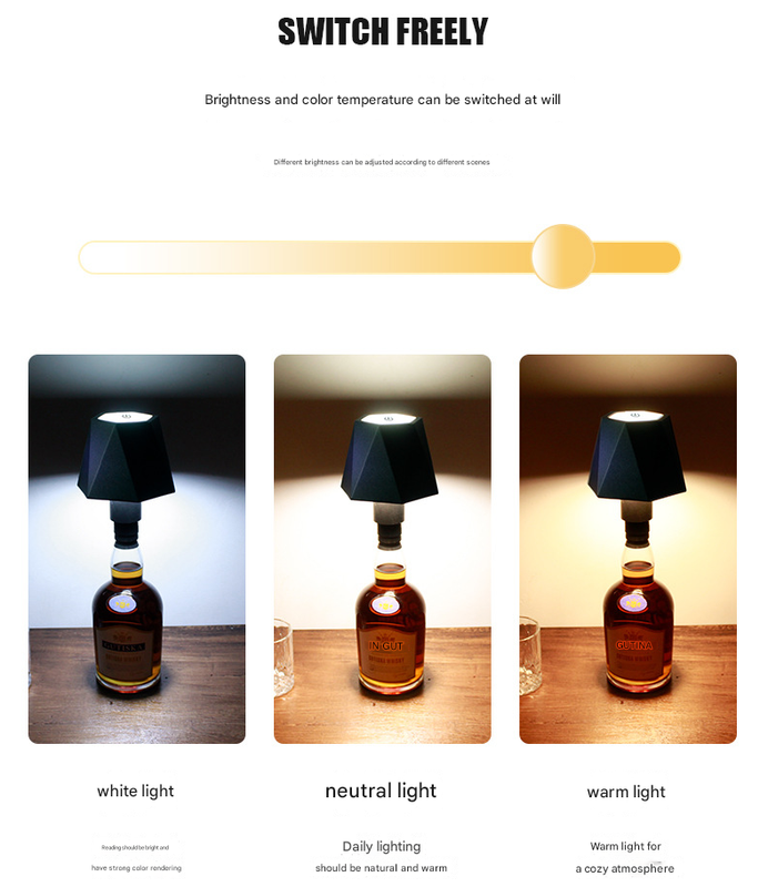 This cordless LED bottle lamp offers a stylish and versatile lighting solution that can easily be placed on most standard bottles. It features touch control, multiple color modes, and adjustable brightness, making it suitable for various settings such as bars, restaurants, or home decor. Its rechargeable design ensures wireless operation and convenience.